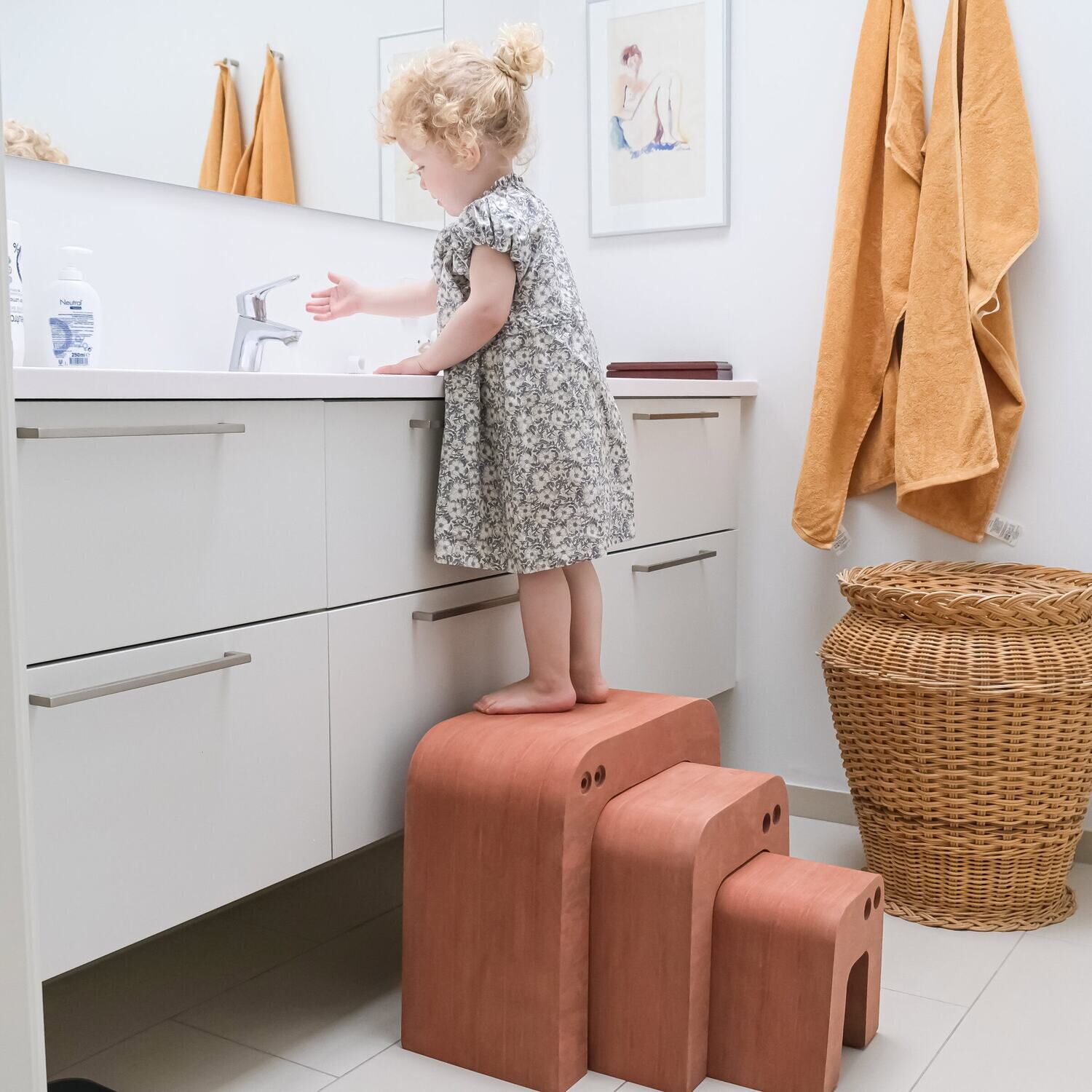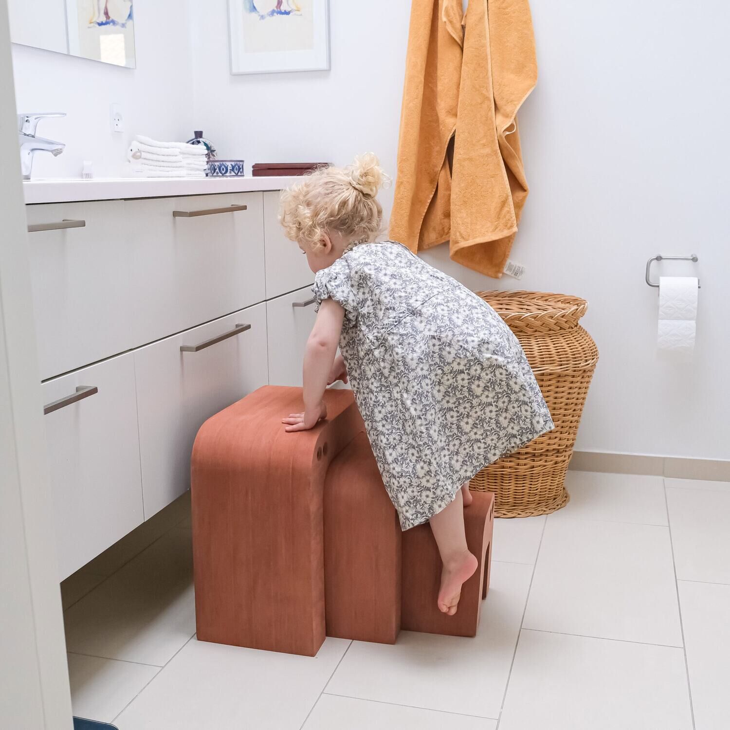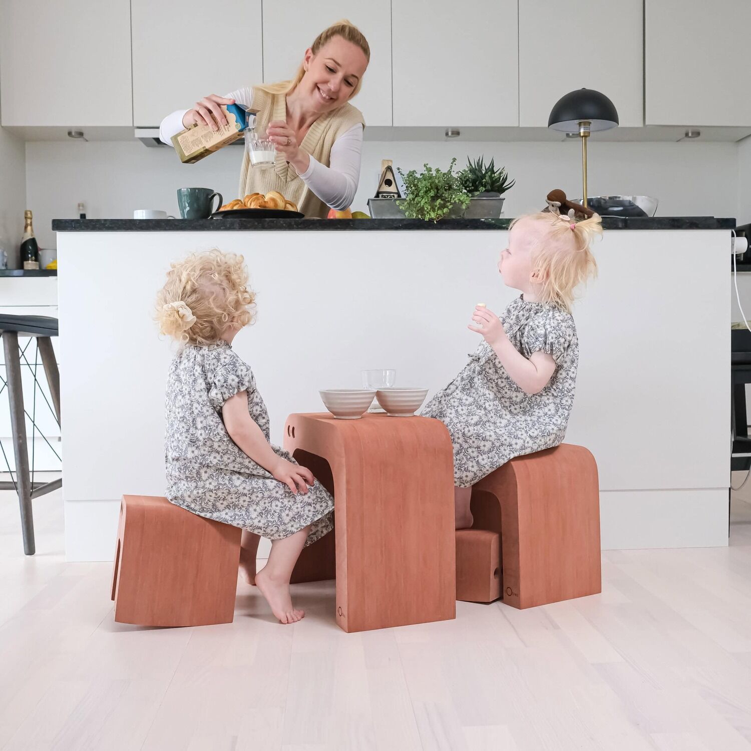 Det er umuligt ikke at forsvinde ind i legen, når barnet kaster sig over Myreslugers fire forskellige tumlemøbler. Styrken ligger i Myreslugers multifunktionalitet - på få sekunder kan den transformere sig fra Gyngestol, trappe og forhindringsbane til bord og stole til teselskabet. To af delene vipper, mens de to andre står fast, og det gør trappe- og skammelfunktionen til en sjov og udfordrende leg for barnet, der samtidig skal forholde sig til ændringen i bredden på trinene for hvert skridt. Sæt den næstmindste del under en af de to større og pludselig har barnet og tumlingen en fantastisk gyngestol eller gyngehest. Når mor og far skal lave en kop te, kan Myresluger blive til en sjov lille kravlegård, når de to store dele ligges på siden og sættes sammen. Her kan den lille baby trygt sidde og vente på sine forældre, mens sanserne bliver stimuleret på det bløde EVA-skum. Kombiner bObles Myresluger med Skildpadde og lad den siddende baby eller tumling få en sjov og sikker vippetur, eller lad Myresluger blive en del af racerbilen på Tumlebræt. Når barnet skal lidt ned i tempo, er Myresluger sjov at stable - og vælte. Ligesom den er perfekt som balancebom, når den bliver lagt på siden og øves linedans. bObles tumlemøbler i Marble Nature farver er en smuk og multifunktionel tilføjelse til dit hjem. Med inspiration fra naturens elementer, smelter de varme marmorfarver ind i indretningen og giver et både legende og afdæmpet udtryk til glæde for både børn og forældre. Ligesom bObles’ andre tumlemøbler, er Marble Nature-serien lavet i fast EVA-skum med en blød overlade, som inviterer til leg, fantasi og motorisk udfoldelse for baby, tumling og barn. Samtidig fungerer de fantastisk som interiør til hele hjemmet.