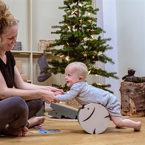 bObles Petite Elephant har stribevis af legende funktioner og giver et hav af motoriske legemuligheder. Barnet kan lege ’fang en fisk’ ved at trille og jage den, sidde på den runde del og være i bevægelse, eller svømme ned af den brusende flod ved at rulle henover på maven og styrke ryg og nakke. Fisken kan også bruges som forhøjer til stolen ved spisebordet. Har man flere, kan der bygges til et kæmpe tårn.
