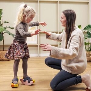 Balanceskoene fra bObles er designet med buede bunde, der skaber en ustabil overflade under fødderne. Dette udfordrer balancen aktivt og giver børn en træningsoplevelse, der udvikler koordination gennem leg. De sorte stropper holder fødderne sikkert på plads, så du kan være tryg, når dit barn bevæger sig.