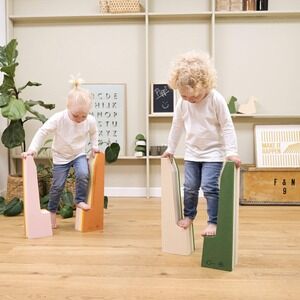 Inkluder stylterne i en forhindringsbane for at fremme fysisk aktivitet og kreativ leg. Dit barn kan kombinere dem med andre legetøj og skabe nye udfordringer. Stylterne kan også samles til en bænk, hvilket giver fleksibilitet i brugen. Denne alsidighed betyder, at legetøjet vokser med dit barns fantasi.