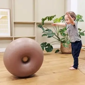 Denne donutformede legemøbel fra bObles er designet til aktiv leg og motorisk udvikling. Fremstillet af 60 % brunt materiale giver den en robust overflade, der tåler daglig brug. Det centrale hul og den runde form inviterer til kreativ leg og balanceøvelser.