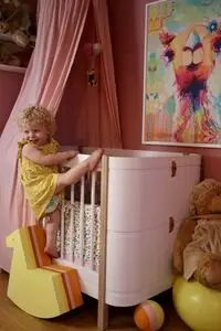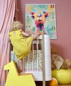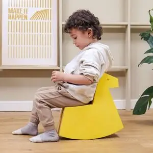 Denne lille hest er en del af bObles x Pippi-kollektionen og bringer leg og bevægelse sammen. Produktet kan bruges som både siddemøbel og klatrehjælp, hvilket gør det til en alsidig ledsager i børneværelset. Det flerfarvede design med gul bund og orange-hvide striber tilføjer et farverigt element.