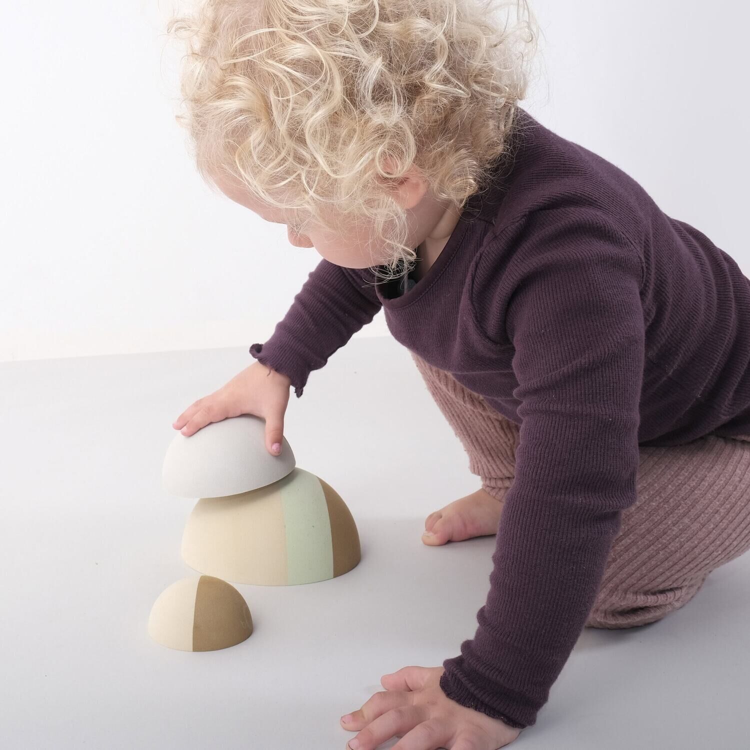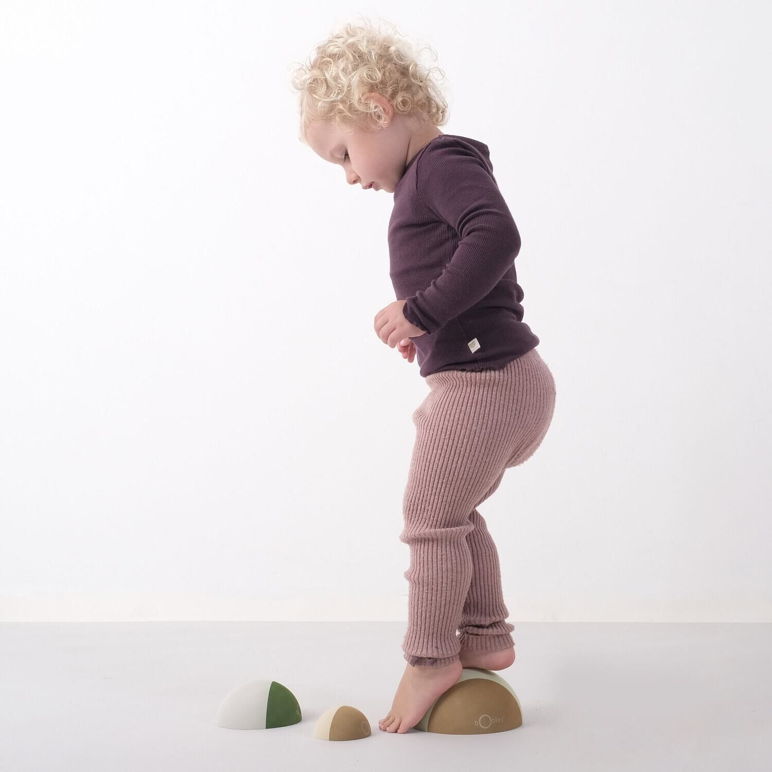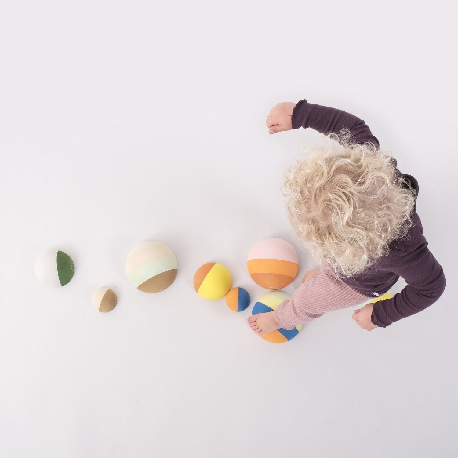 De tre forskellige størrelser giver varierede udfordringer, som hjælper dit barn med at træne balance, koordination og kreativitet. Elementerne kan stables, rulles på eller bruges som forhindringer i fantasifulde legebaner. De farverige segmenter stimulerer visuel læring og gør det nemt at skelne mellem de forskellige størrelser.