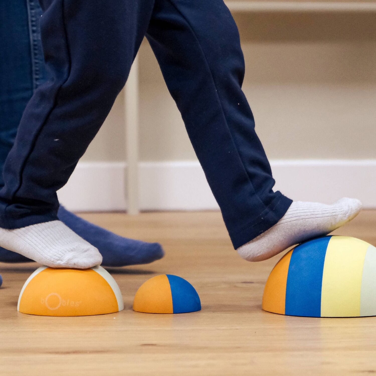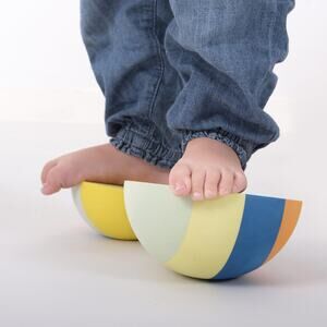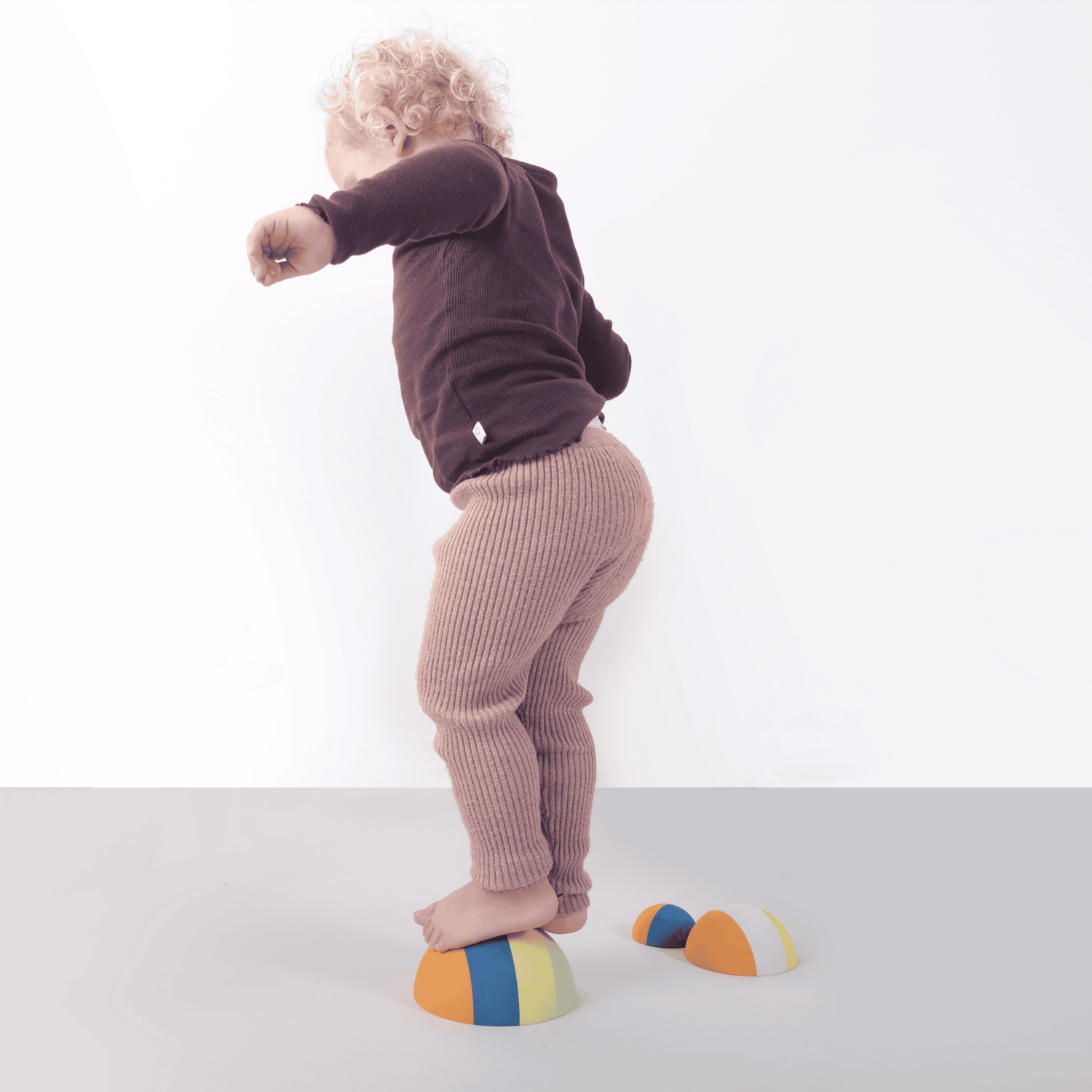 Pippi Tumlesten er skabt til at støtte dit barns motoriske udvikling gennem aktiv leg. De tre halvkugleformede elementer i orange, blå, gul og hvid inviterer til bevægelse, balance og koordinationstræning – alt sammen integreret i daglig leg.