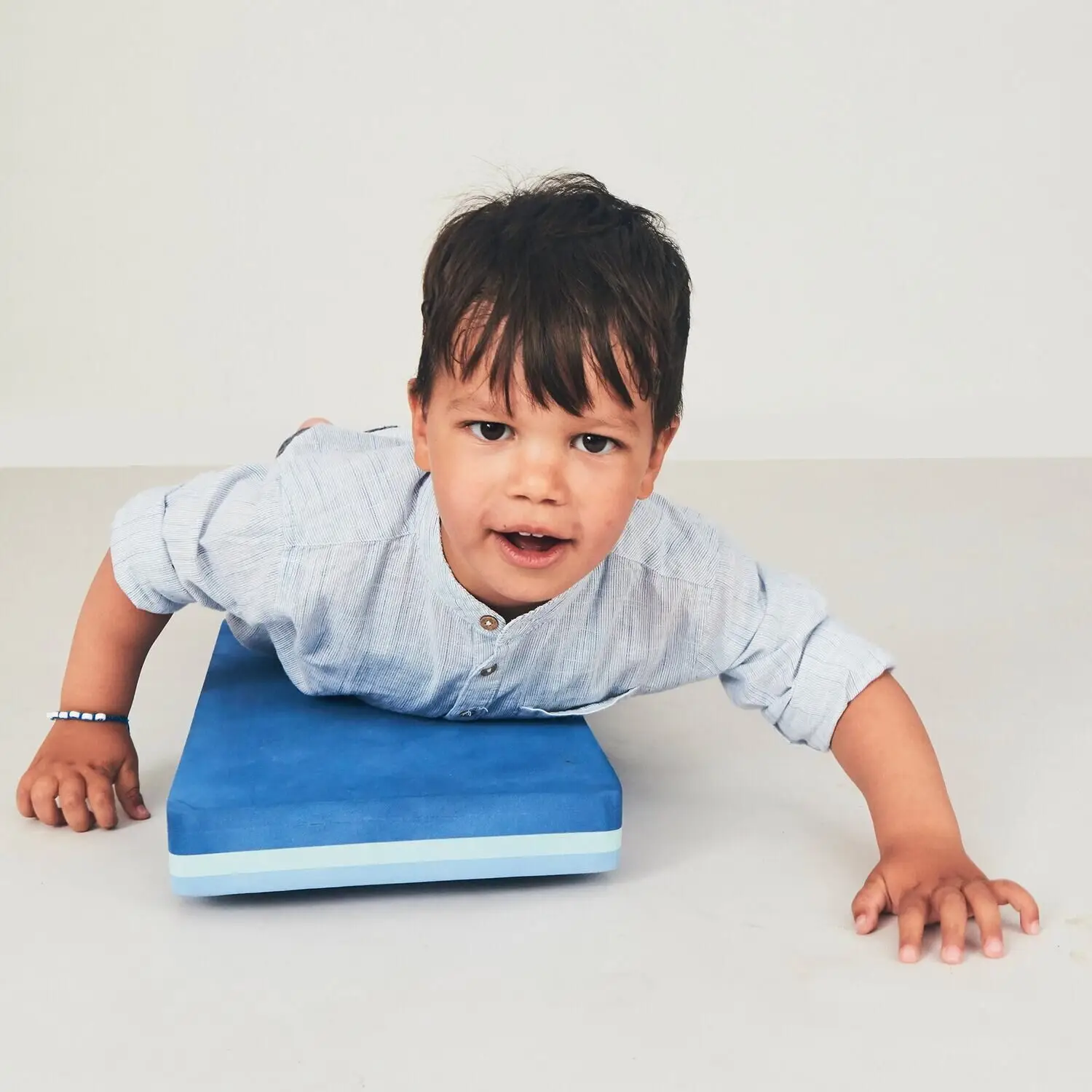 Stimuler både vestibulærsans og muskelledsans når den lille ligger på maven på Tumlebræt og spænder op i hele kroppen af begejstring og eventyrsglæde.