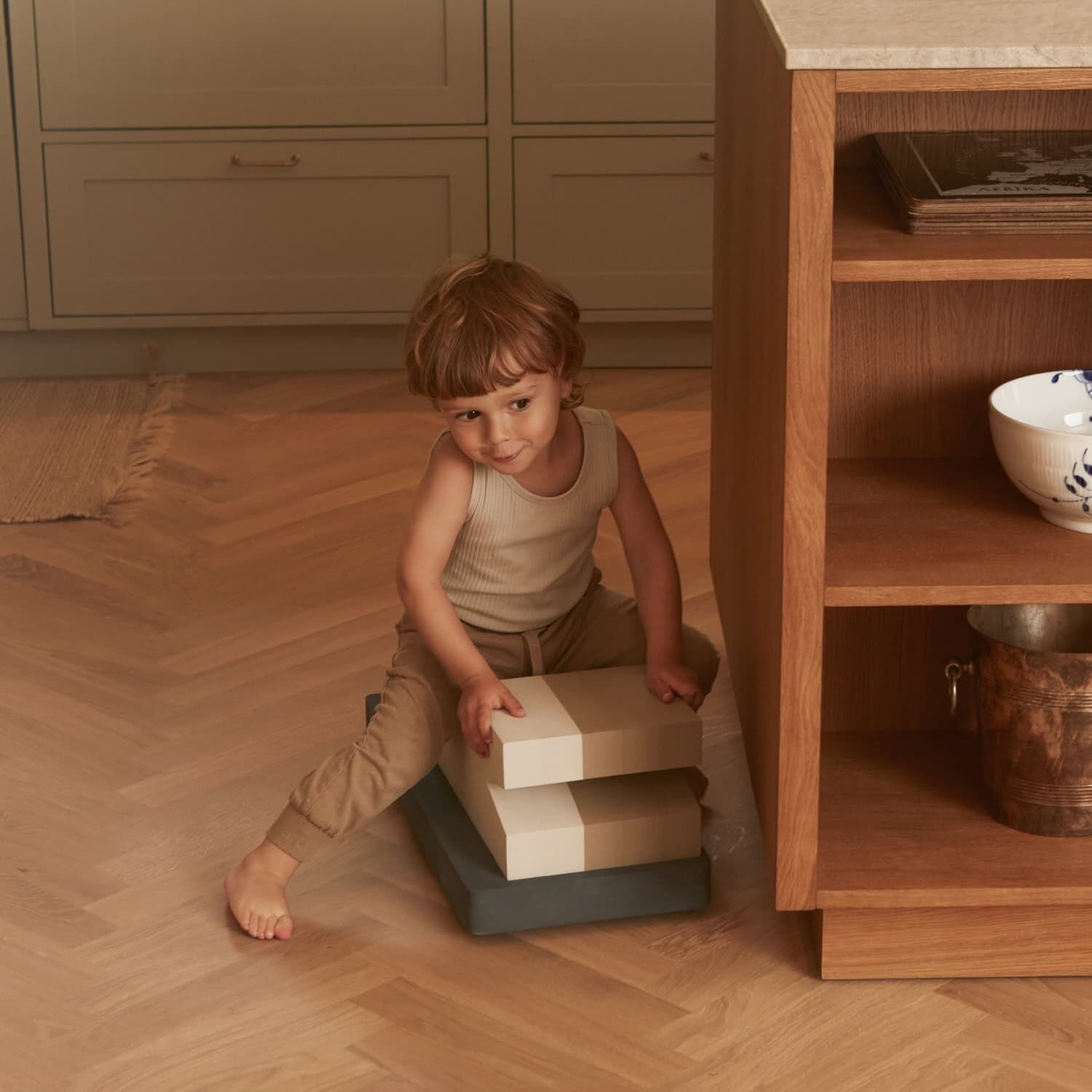 Sus i maven og vind i håret - den følelse kan man hverken være for ung eller blive for gammel til, og bObles Tumlebræt er garant for begge dele. Stimuler både vestibulærsans og muskelledsans når den lille ligger på maven på Tumlebræt og spænder op i hele kroppen af begejstring og eventyrsglæde. Læg et andet tumlemøbel på Tumlebræt og pludselig forvandler det sig til en racerbil eller et flyvende tæppe. Lad den helt lille baby suse mellem sine forældre og bedsteforældre, mens Kylling hjælper med at løfte hovedet, så der er masser af kontakt og nærvær. Eller sæt en Elefant i ryggen på den siddende baby, som pludselig har fået en lynhurtig bil. Jo ældre barnet blive des vildere kan bObles-bilen blive. Det skridsikre EVA-skum gør det let af slippe fantasien løs, når der skal leges. Tumlingen vil elske at transportere legetøj og service rundt, når der skal hjælpes med borddækningen. Og det store barn vil nyde at suse rundt af egne kræfter enten på maven ved hjælp af armene eller på numsen med brug af benene. Sidstnævnte er fantastisk til at styrke og træne haserne på barnet.