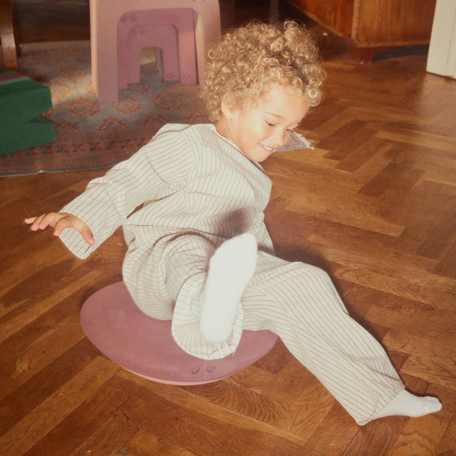 Her er gaven til hele familien! Skildpadde er nemlig en sikker vinder fra baby til bedstemor, og så har selv de mindste hjem plads til den. Den bløde bue og store understøttelsesflade er som skabt til den lille baby, som skal have hjælp til at ligge på maven og styrke nakke og ryg. De samme egenskaber gør Skildpadde til det perfekte vippebræt for både børn og voksne. Den bløde bue giver nemlig mulighed for at arbejde stille og roligt med muskelfiberne. Så når børnene er færdige med at lege "Jorden er giftig" på Skildpadde, kan mor og far udfordre balancen, mens de laver mad. Tumlingen vil nyde at bruge bObles Skildpadde som skammel til at komme lidt op i højden, som vippende stol og selvfølgelig det første balancebræt, hvor de holder forældrene i hånden, mens de træner balancen på den. De naturlige farver er omhyggeligt udvalgt, for at skabe rolige, sanselige og inspirerende omgivelser for barnet at lege i, samtidig med at farverne, såvel som tumlemøblerne er tidløse og kan holde til mere end én sæson.