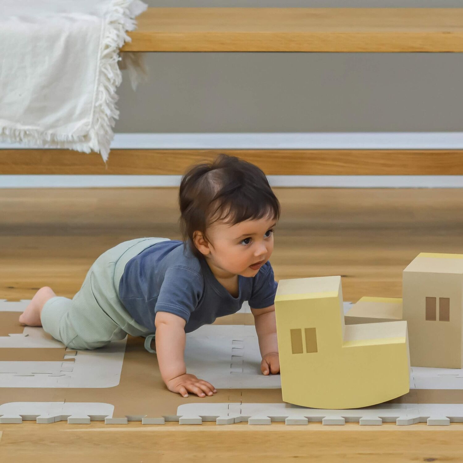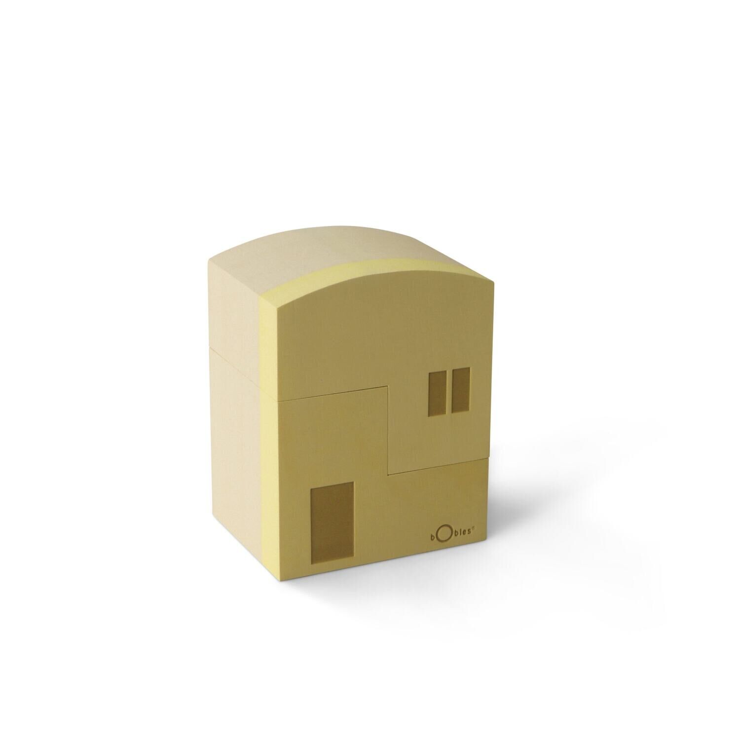 Town House Double er i to dele. Samlet kan det bruges som skammel, og vendes det på hovedet, bliver det en skammel, der kan vippe. Barnet kan bruge det for sig eller inddrage resten af børneværelset og de andre Town-huse i en leg på tumlegulvet med vejbaner. Byg din egen by - måske kan du genkende mormors hus eller din bedste vens? Town er perfekt til både aleneleg og sammen med andre. Det stimulerer både fantasi og motorik, samtidig med at det giver anledning til samtale mellem barn og voksen om barnets plads i verden, det nære miljø, trafikregler m.v. Town forener alt det bedste fra vores klassiske designs med en ekstra dimension. Town-kollektionen er skabt til familiens lille arkitekt som en hyldest i børnehøjde til Norden og de nordiske byer København, Stockholm, Oslo, Helsinki og Tórshavn. Her kan tumles, vippes og siddes på byens tage og leges kreativt med de forskellige Town-dele, så barnet kan bygge sin egen lille by.