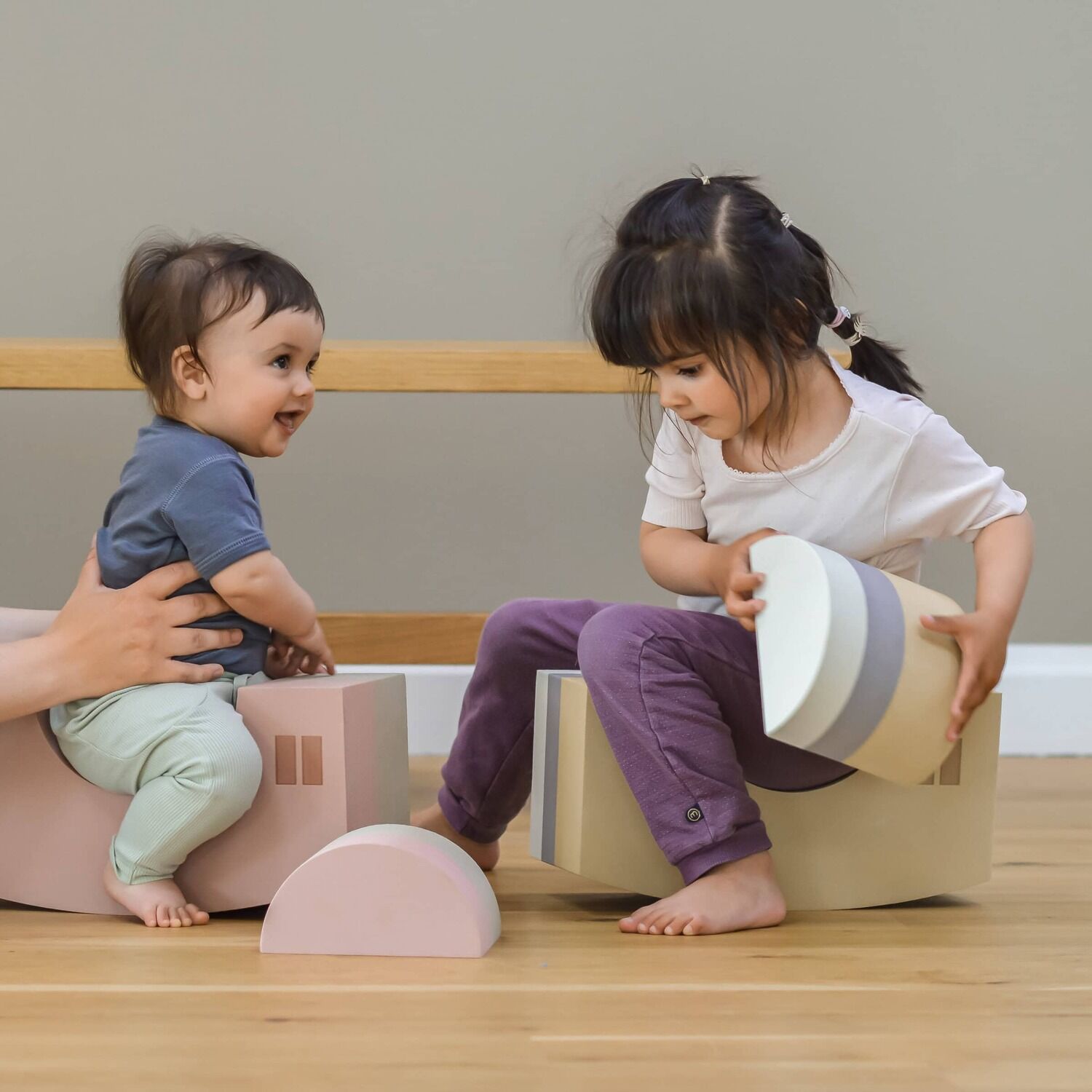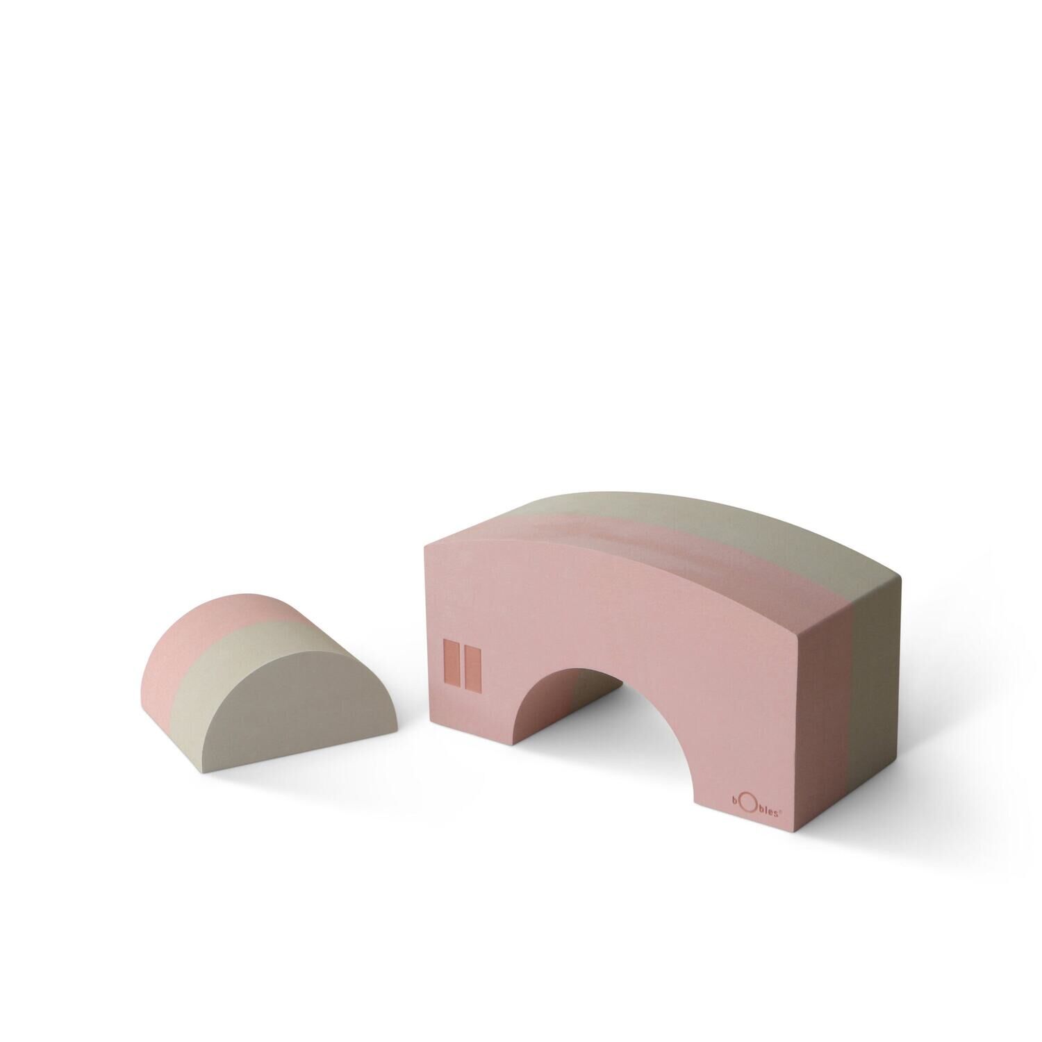 Town House Gate har mange forskellige funktioner og består af to dele. Sammen kan de bruges som skammel, og hvis det vendes på hovedet, får barnet en vippe til at sidde, ligge på maven, eller stå og balancere på. Hvis den lille del tages ud, kan den bruges alene som trædesten til en forhindringsbane, eller den kan lægges foran Town House Gate som en lille trappe. Vendes huset på hovedet uden den lille del, kan barnet sidde i hullet og vippe frem og tilbage. Town House Gate kan bruges alene eller sammen med andre Town-huse til leg på tumlegulvet med vejbaner. Byg din egen by, måske kan du genkende mormors hus eller din bedste vens? Town er perfekt til både aleneleg og sammen med andre. Det stimulerer både fantasi og motorik samtidig med at det giver anledning til samtale mellem barn og voksen om barnets plads i verden, det nære miljø, trafikregler, m.v. Town forener alt det bedste fra vores klassiske designs med en ekstra dimension. Town-kollektionen er skabt til familiens lille arkitekt som en hyldest i børnehøjde til Norden og de nordiske byer København, Stockholm, Oslo, Helsinki og Tórshavn. Her kan tumles, vippes og siddes på byens tage og leges kreativt med de forskellige Town-dele, så barnet kan bygge sin egen lille by.