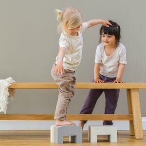 Town House Living er i to dele. Samlet kan det bruges som skammel, og vendes det på hovedet, bliver det en skammel, der kan vippe. Barnet kan bruge det for sig eller inddrage resten af børneværelset og de andre Town-huse i en leg på tumlegulvet med vejbaner. Byg din egen by - måske kan du genkende mormors hus eller din bedste vens? Town er perfekt til både aleneleg og sammen med andre. Det stimulerer både fantasi og motorik, samtidig med at det giver anledning til samtale mellem barn og voksen om barnets plads i verden, det nære miljø, trafikregler m.v. Town forener alt det bedste fra vores klassiske designs med en ekstra dimension. Town-kollektionen er skabt til familiens lille arkitekt som en hyldest i børnehøjde til Norden og de nordiske byer København, Stockholm, Oslo, Helsinki og Tórshavn. Her kan tumles, vippes og siddes på byens tage og leges kreativt med de forskellige Town-dele, så barnet kan bygge sin egen lille by.