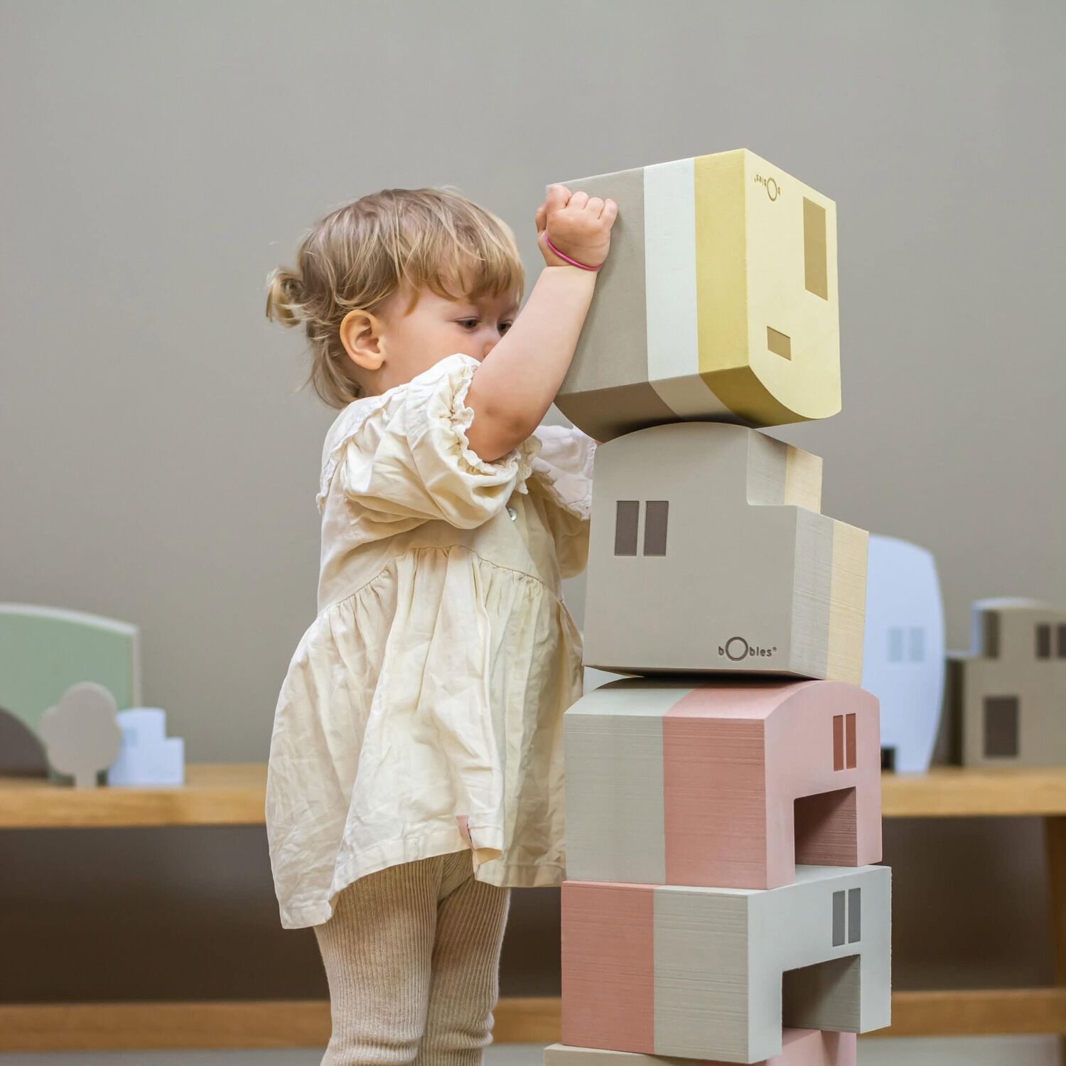 Town House kan bruges som skammel, og vendes det på hovedet, bliver det en skammel, der kan vippe. Dit barn vil elske at bygge sin egen lille by af Town-huse og lege med det på tumlegulvet med vejbaner. Måske barnet kan genkende mormors hus eller sin bedste vens? Town er perfekt til både aleneleg og sammen med andre. Det stimulerer både fantasi og motorik, samtidig med at det giver anledning til samtale mellem barn og voksen om barnets plads i verden, det nære miljø, trafikregler m.m. Town forener alt det bedste fra vores klassiske designs med en ekstra dimension. Town-kollektionen er skabt til familiens lille arkitekt som en hyldest i børnehøjde til Norden og de nordiske byer København, Stockholm, Oslo, Helsinki og Tórshavn. Her kan tumles, vippes og siddes på byens tage og leges kreativt med de forskellige Town-dele, så barnet kan bygge sin egen lille by.
