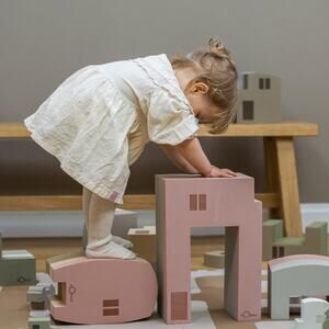Town Water Tower har mange forskellige funktioner. Det kan bruges som skammel, eller som en trappe. Vendes det på hovedet, får barnet en vippe til at sidde, ligge på maven, stå og balancere på. Dit barn kan bruge Town Water Tower alene eller sammen med andre Town-huse og lege med det på tumlegulvet med vejbaner. Byg din egen by, måske kan du genkende mormors hus eller din bedste vens? Town er perfekt til både aleneleg og sammen med andre. Det stimulerer både fantasi og motorik, samtidig med at det giver anledning til samtale mellem barn og forælder om barnets plads i verden, det nære miljø, trafikregler, m.v. Town forener alt det bedste fra vores klassiske designs med en ekstra dimension. Town-kollektionen er skabt til familiens lille arkitekt som en hyldest i børnehøjde til Norden og de nordiske byer København, Stockholm, Oslo, Helsinki og Tórshavn. Her kan tumles, vippes og siddes på byens tage og leges kreativt med de forskellige Town-dele, så barnet kan bygge sin egen lille by.