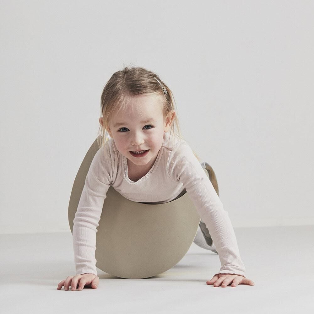 Når dit barn bruger tumleægget, træner det balance og koordination gennem leg. De to dele kan bruges hver for sig eller sammen, hvilket giver mulighed for forskellige aktiviteter, der matcher barnets udviklingsniveau. Den buede bund skaber bevægelse, når barnet sidder, står eller kravler på den.
