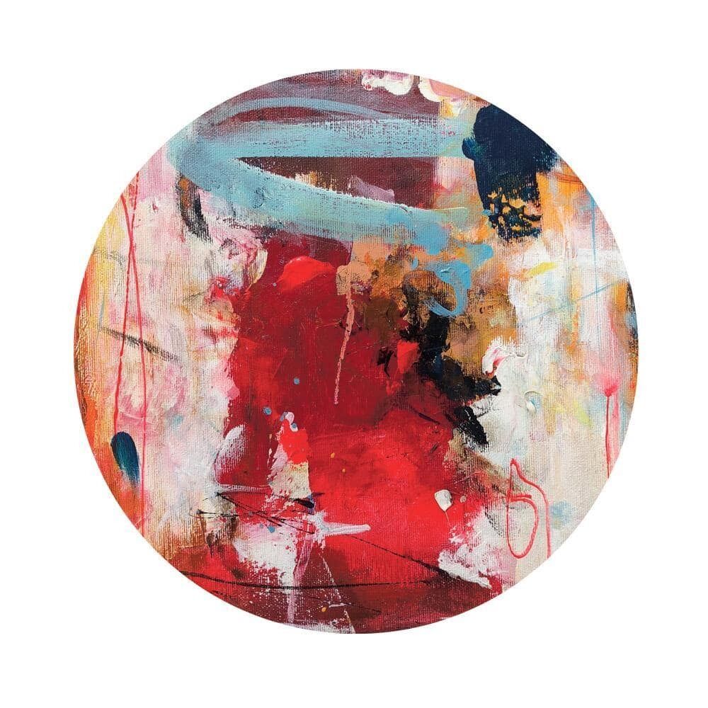 - Kunstnerisk mønster i røde, blå og gule nuancer