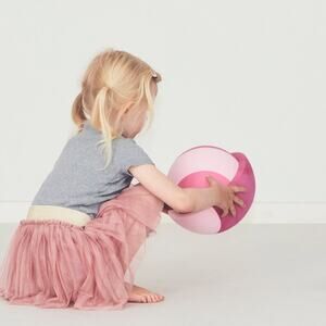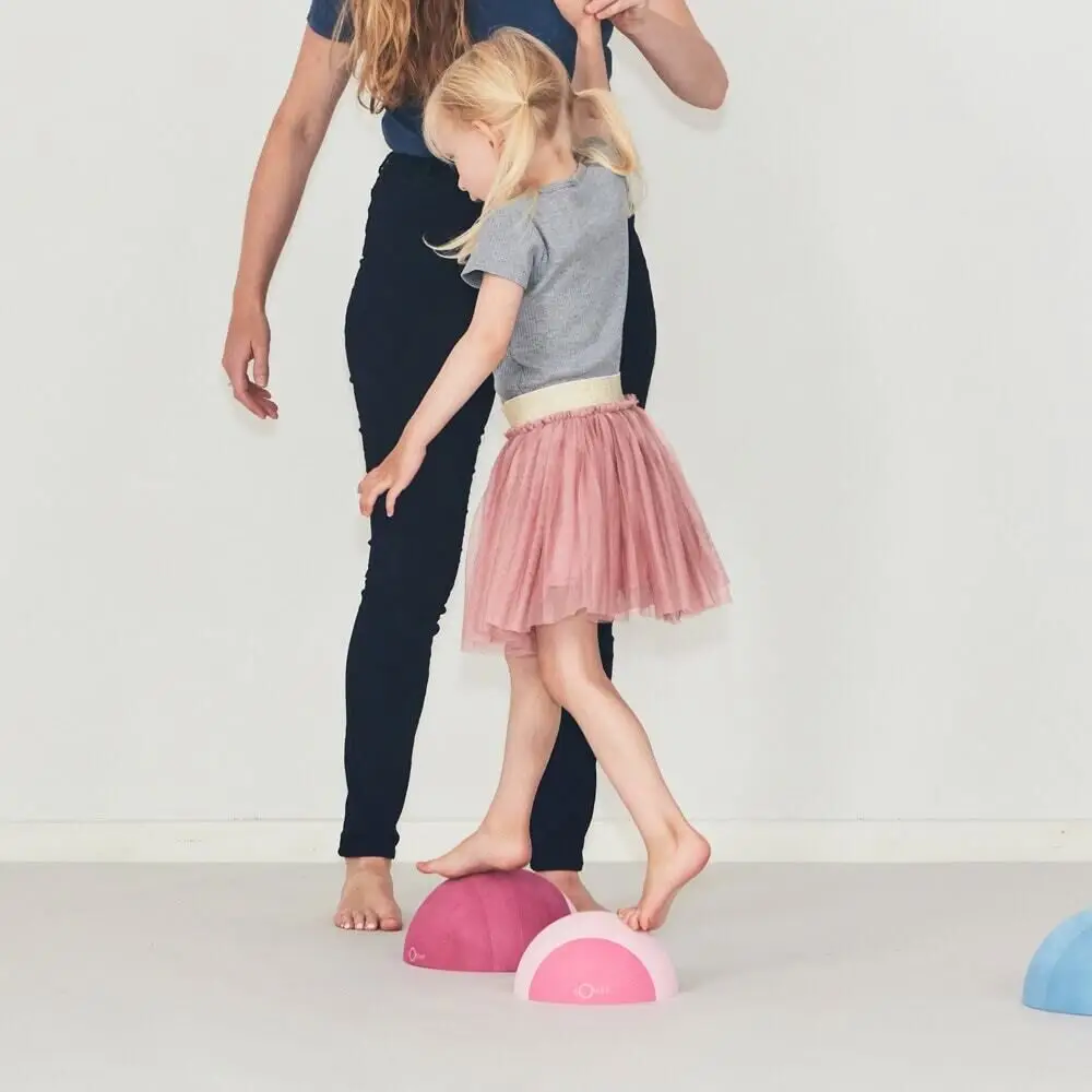 Brug tumlesten som stabil skammel, når dit barn skal nå højere, eller vend den til en bevægelig bue for balancetræning. Dit barn kan ligge på maven over rundingen for at styrke nakken, hvilket understøtter den fysiske udvikling. Den halvkugleformede konstruktion giver mulighed for kreativ leg, der integreres naturligt i daglige rutiner.