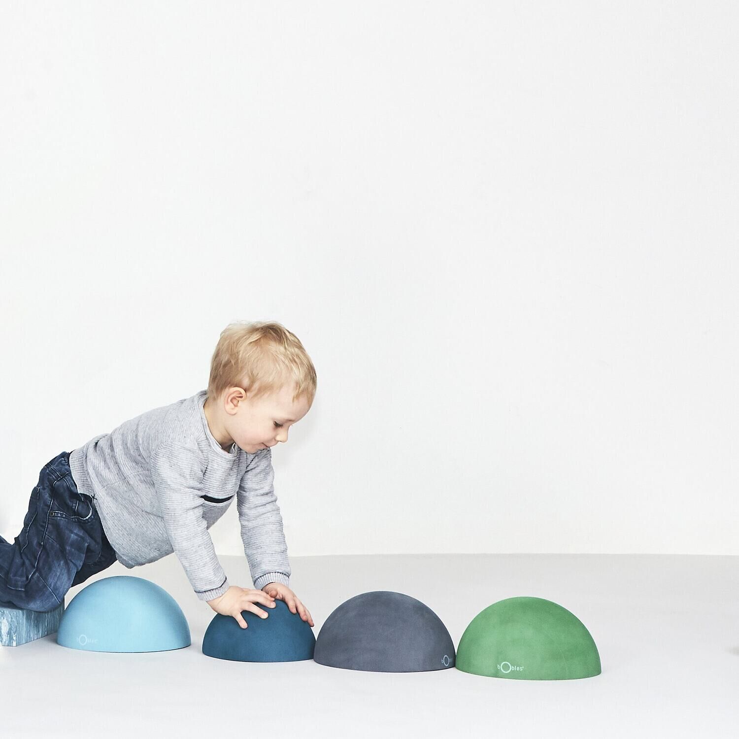 Hvis du søger legetøj, der kan tilpasses dit barns udvikling, giver Tumlesten mulighed for forskellige anvendelser. Produktet kan vendes for at skabe nye balanceudfordringer, så dit barn hele tiden møder passende sværhedsgrader. Den glatte grå overflade med bObles-mærket holder til aktiv brug.