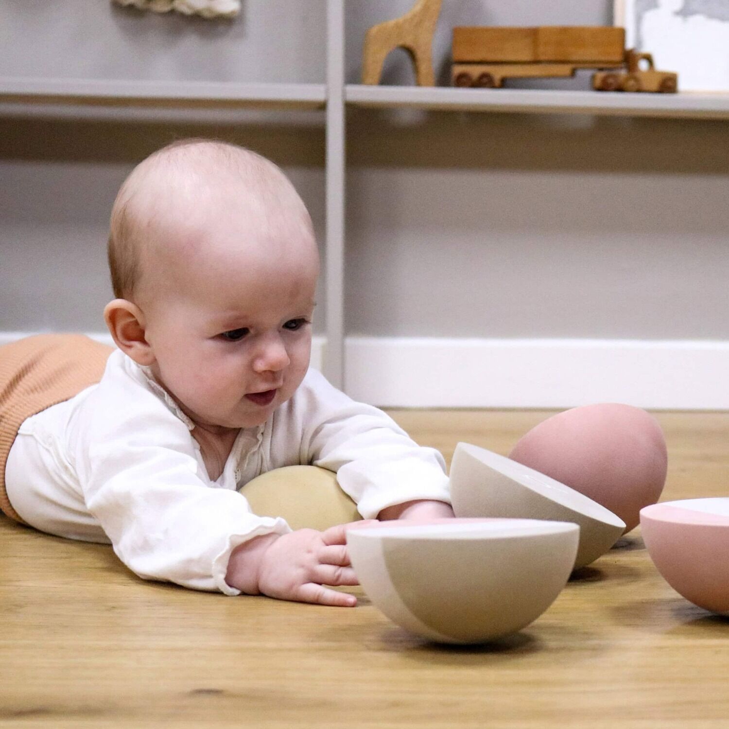 Dette sæt af halvkugleformede tumblesten er designet til balanceleg, der støtter børns udvikling af motoriske færdigheder. Stenene kan arrangeres i tumlebaner, hvor dit barn kan hoppe, balancere og udforske kreative bevægelsesmønstre. De er nemme at holde for små hænder og passer ind i aktiv leg.