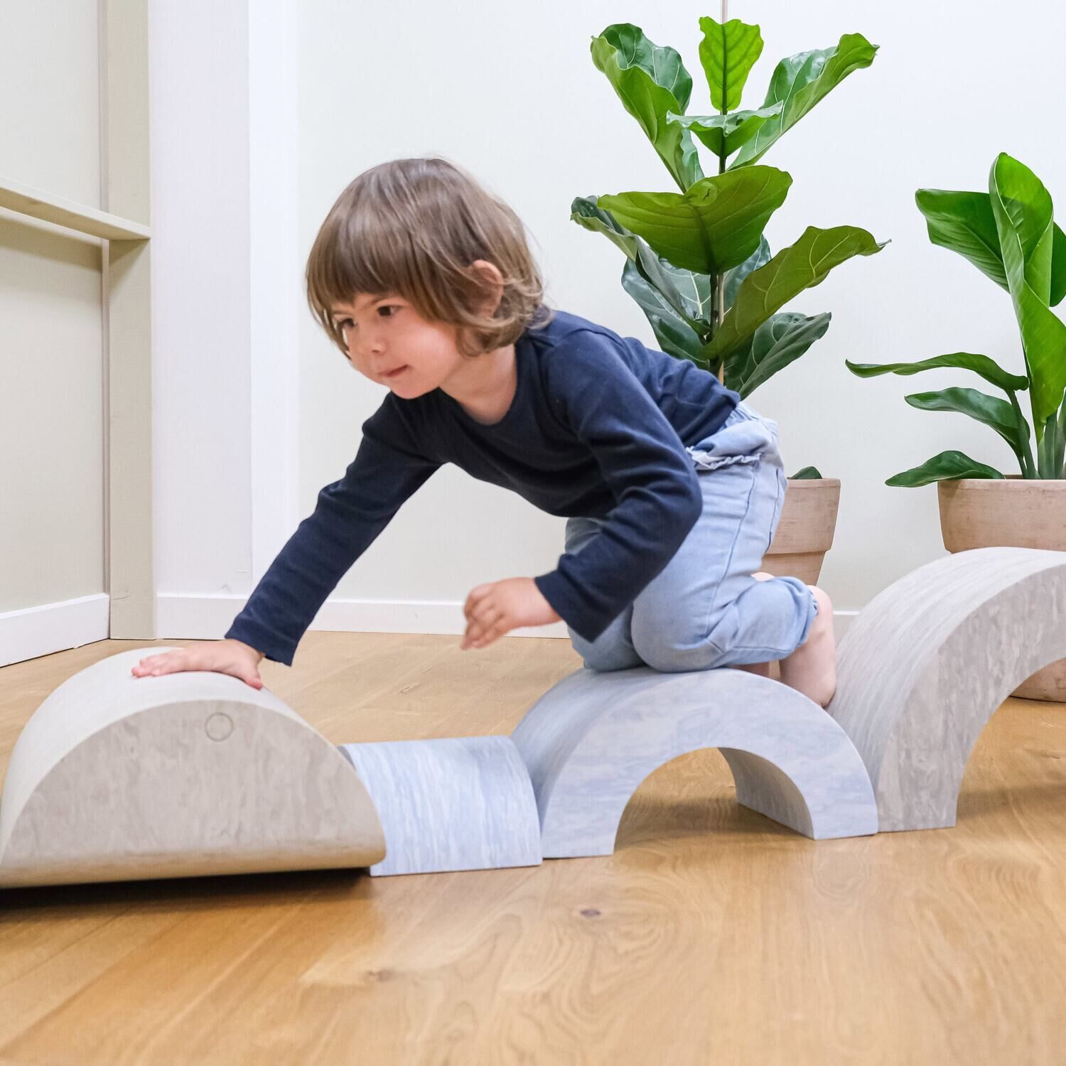 Hvis dit barn har brug for aktiviteter, der styrker motoriske færdigheder, giver de to buede stykker mulighed for varieret leg. Den større bue kan bruges til klatring, mens den mindre fungerer som siddemøbel eller balanceudstyr. Dette hjælper børn med at udvikle koordination gennem hverdagslege.