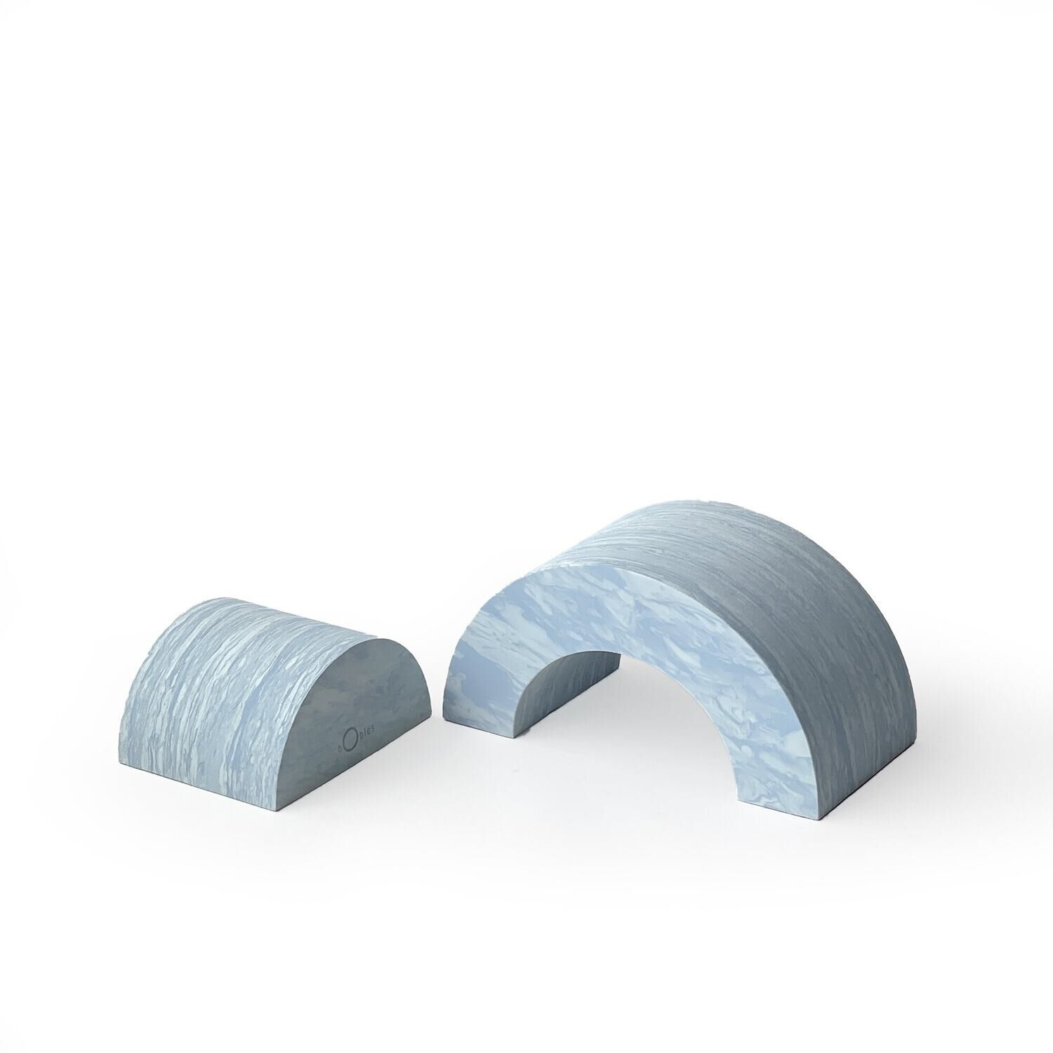 bObles Tunnel S Mist består af to buede stykker – en større og en mindre – der giver dit barn mulighed for at klatre, sidde og lege på forskellige måder. Produktet er lavet af 60 % blåt materiale med et marmoreret mønster, der passer ind i de fleste hjem.