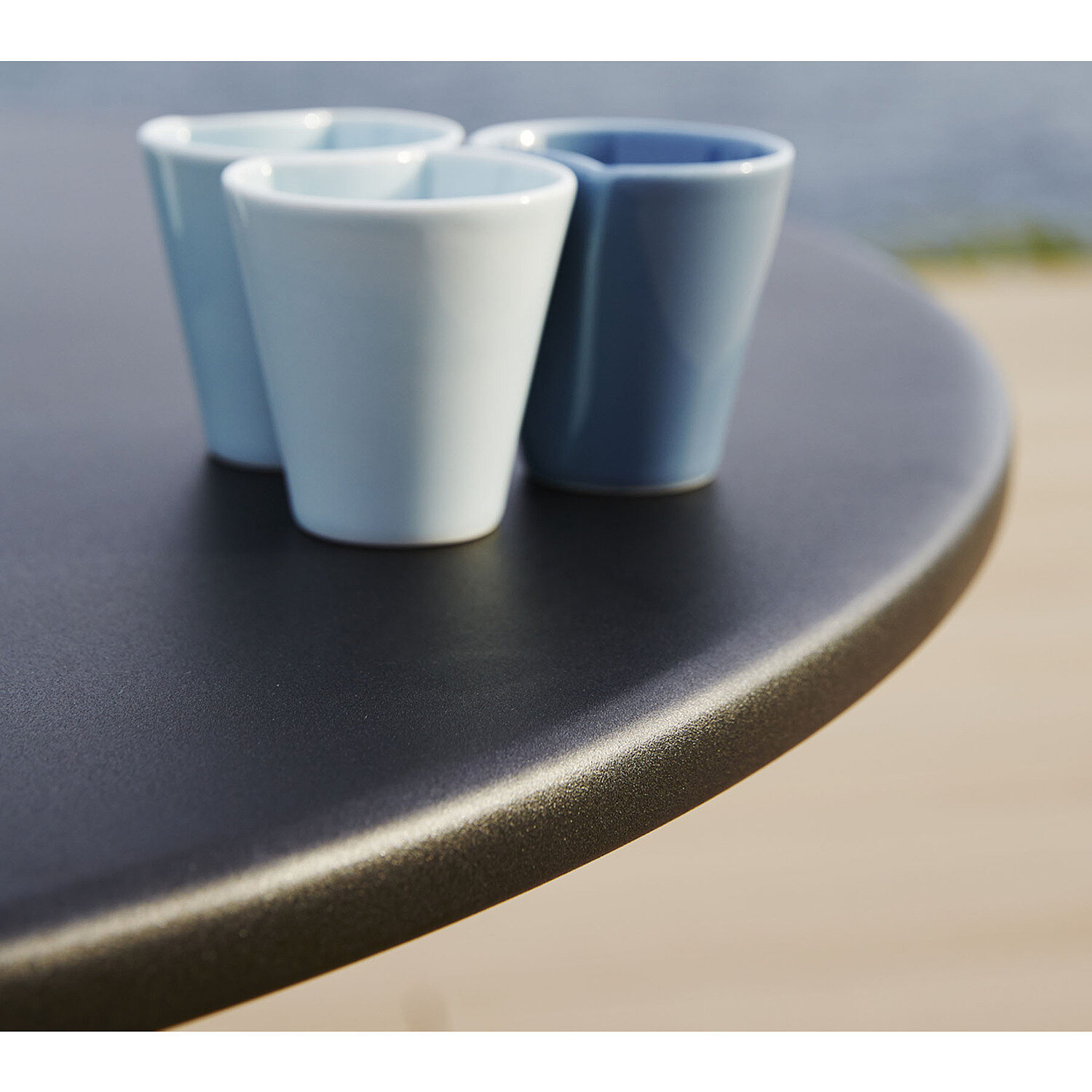 Cane Line Area Bord i lava grå aluminium bringer sofistikeret enkelhed til din terrasse. Med en diameter på 110 cm og en højde på 73 cm tilbyder dette runde bord rigelig plads til hyggelige måltider under åben himmel. Den robuste aluminiumsramme sikrer lang levetid og minimal vedligeholdelse, hvilket gør bordet ideelt til både daglig brug og særlige lejligheder. Bordets design med fire udadgående ben giver en stabil base for dine udendørs sammenkomster.