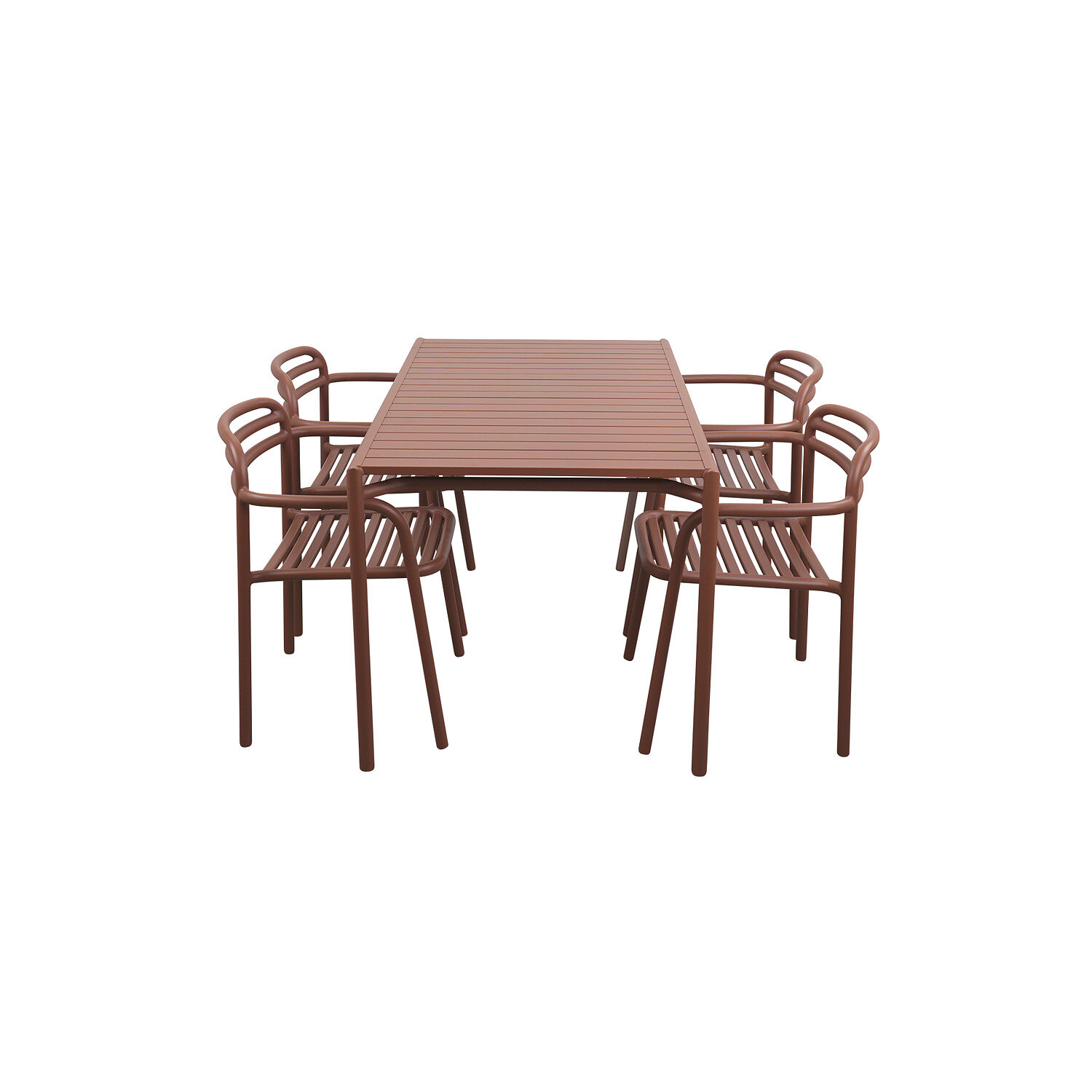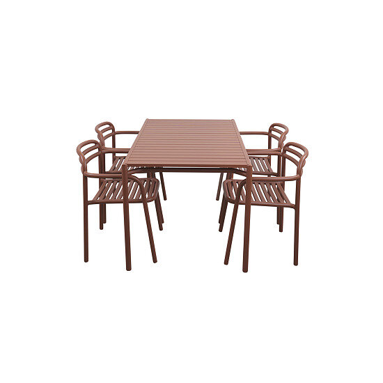 Dette udendørs spisesæt fra Cane-Line er designet til at modstå vind og vejr. Møblerne er fremstillet i aluminium med en Desert Red-finish, der giver dit udendørs område et stilrent udtryk.