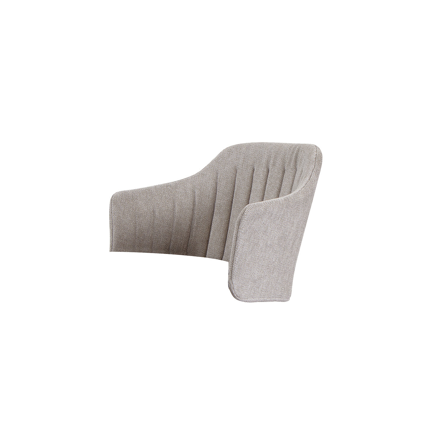 Stolen Cane-Line Choice med polstret rygbetræk i lys brun farve er designet til indendørs brug. Den har en moderne æstetik med vertikale sømme, der skaber en struktureret effekt. Materialet er blødt og indbydende, hvilket gør stolen velegnet til en stilbevidst målgruppe.
