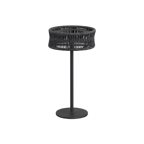 Cane-Line Illusion bordlampe i medium størrelse er designet med mørkegrå Cane-line Soft Rope og et aluminiumsstel. Denne lampe kombinerer en struktureret fletning med en enkel og moderne æstetik, der passer til nutidig indretning. Lampens minimalistiske design gør den velegnet til både indendørs og udendørs brug.