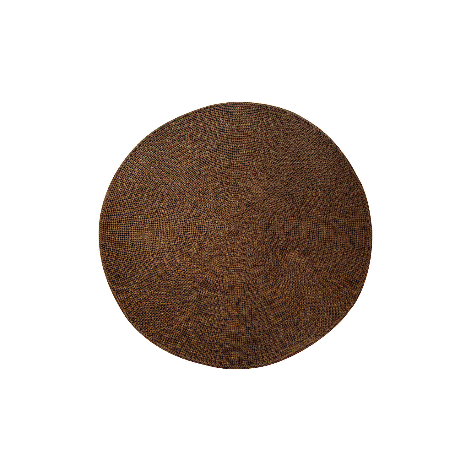 Med en diameter på 200 cm skaber tæppet en indbydende atmosfære. Den varme umberbrune farve komplementerer forskellige farvepaletter. Tæppets cirkulære form skaber en blød kontrast til rektangulære møbler.