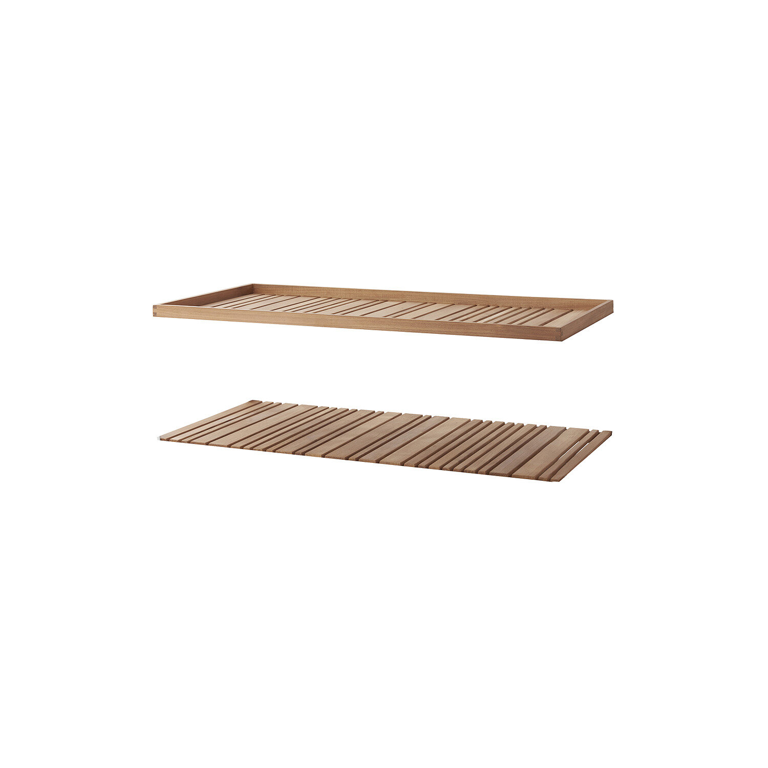 Cane-Line - Level sofabord rekt. bordpladesæt (2 stk.) Teak er designet til Level sofabordunderstellet. Sættet indeholder to vejrbestandige, vandafvisende og UV-resistente bordplader, der tåler temperaturer fra -40° til +70°. De bringer skandinavisk design til dit udendørs område og kan ikke drejes, stables eller foldes. Med 2 års produktgaranti er de en holdbar løsning. Bemærk, at sættet ikke inkluderer bordunderstel, hvilket giver dig fleksibilitet til at vælge det understel, der passer bedst til din indretning.