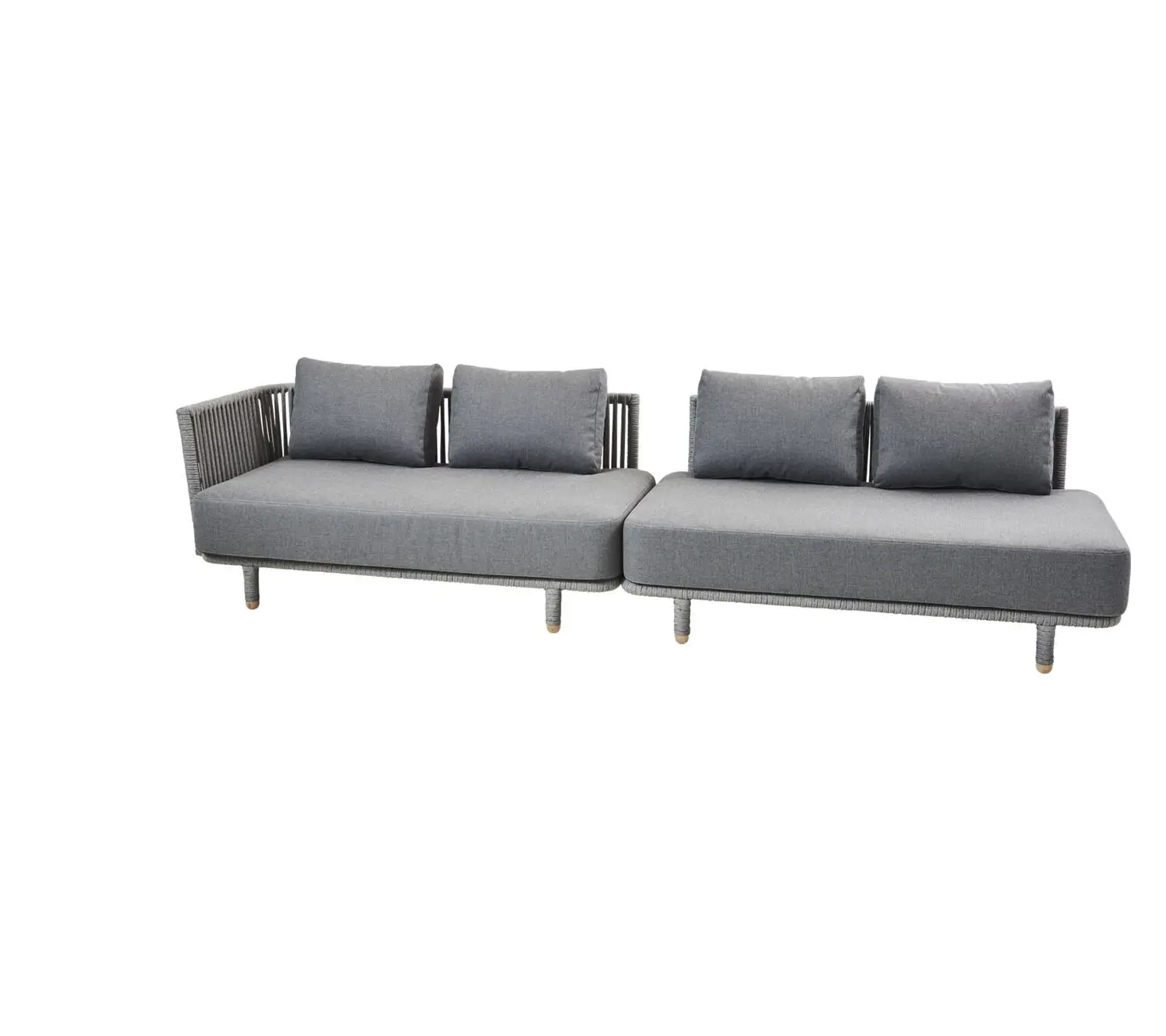 Cane-Line - Moments 2-pers. sofa højre modul Inkl. grey Cane-line AirTouch hyndesæt Grey, Cane-line Soft Rope