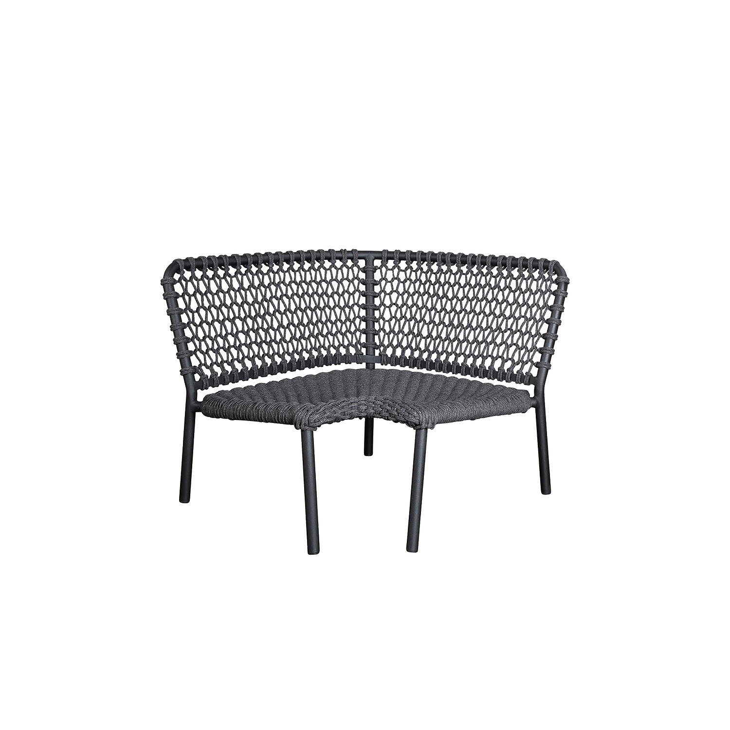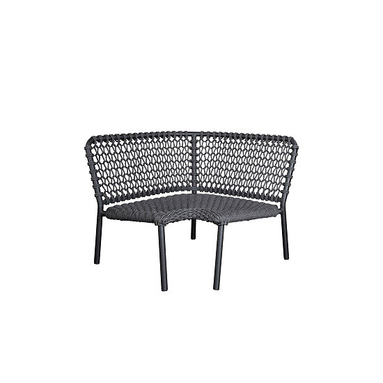 Cane-Line - Ocean hjørnemodul i mørkegrå Soft Rope er en praktisk tilføjelse til din udendørs lounge. Dette fleksible modul kombinerer moderne design med traditionelt håndværk, skabt til komfort og funktionalitet under åben himmel.