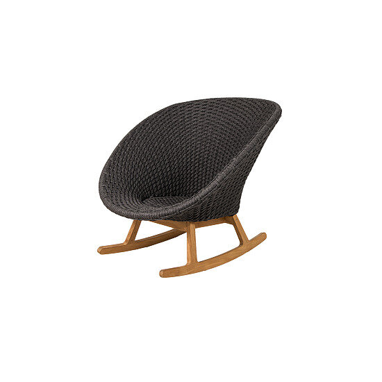 Cane-Line Peacock gyngestol kombinerer komfort og stil i et tidløst design. Med et sæde flettet i mørkegrå Cane-line Soft Rope og et understel af teaktræ er stolen designet til udendørs brug i forskellige miljøer.