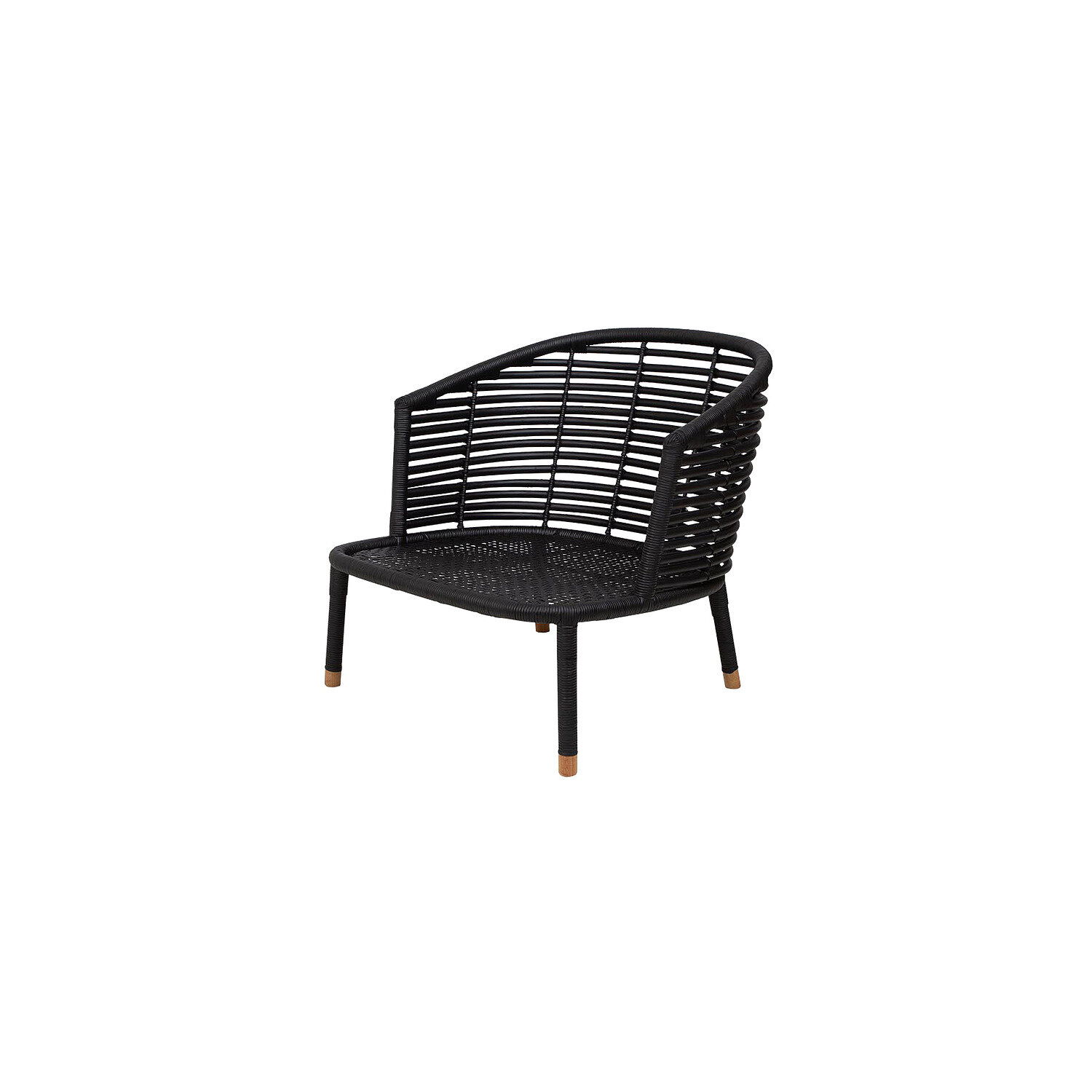 Sense loungestolen fra Cane-Line er designet til indendørs brug med en vævet PP-bund og rattan-look. Den har et moderne og organisk design med buede linjer og åbne rygpaneler. Stolen er sort og har ben med lyse ender, der giver et elegant touch. Med en sædehøjde på 43 cm og en bredde på 75 cm tilbyder den komfort og stil til ethvert moderne hjem.