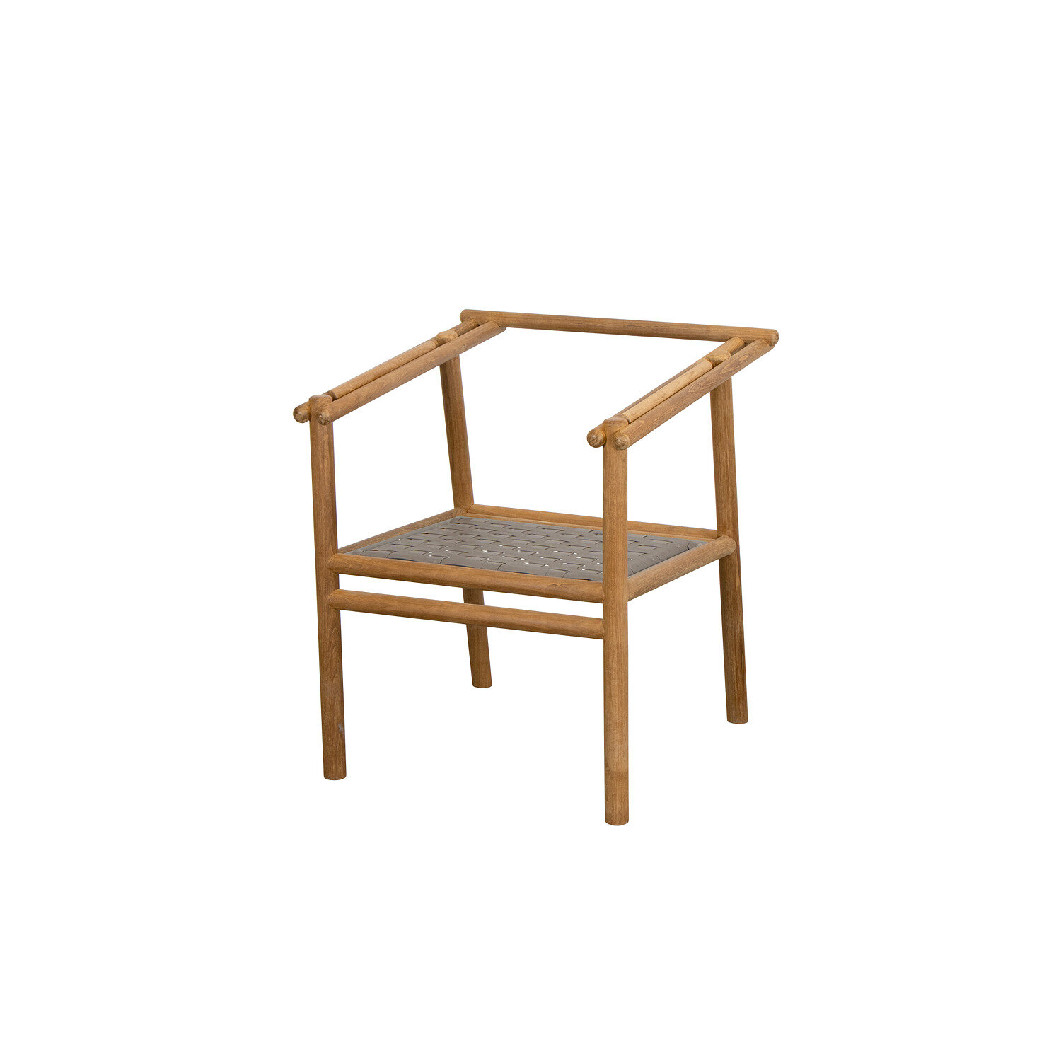 Teakstolen fra Cane-Line er designet til udendørs brug. Den har et minimalistisk og moderne design med en naturlig teaktræsfarve. Stolen er uden hynde og har en struktureret siddeflade, der skaber et stilrent look. Armlænene tilføjer ekstra komfort og funktionalitet.
