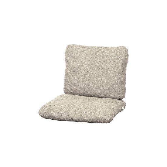 Dette hyndesæt er designet med henblik på udendørs anvendelse. Den lysebrune farve og den teksturerede overflade giver et stilfuldt udtryk, der kan integreres i forskellige udendørs omgivelser. Puderne er udformet til at give støtte og komfort under udendørs brug.