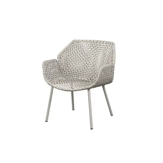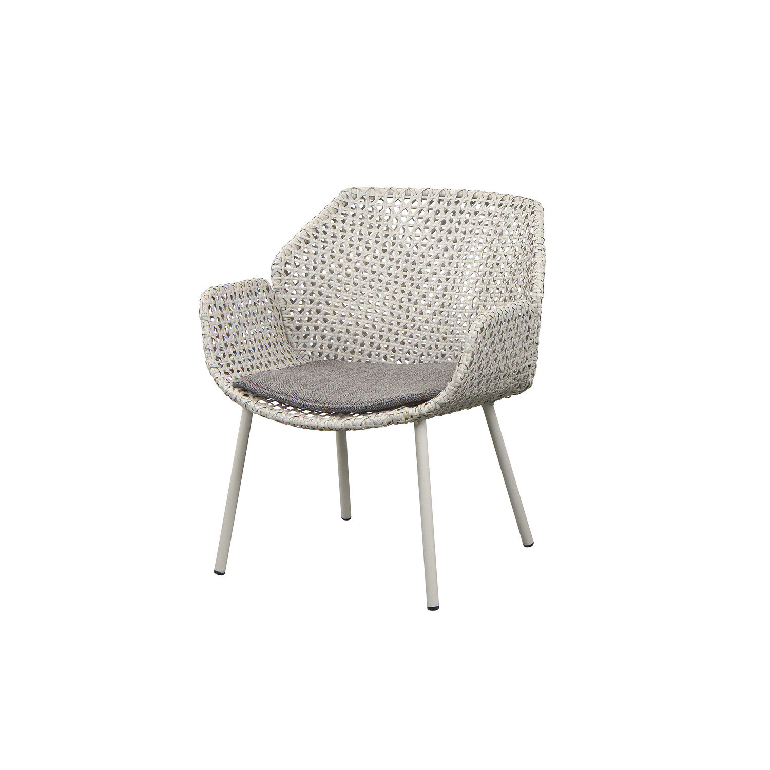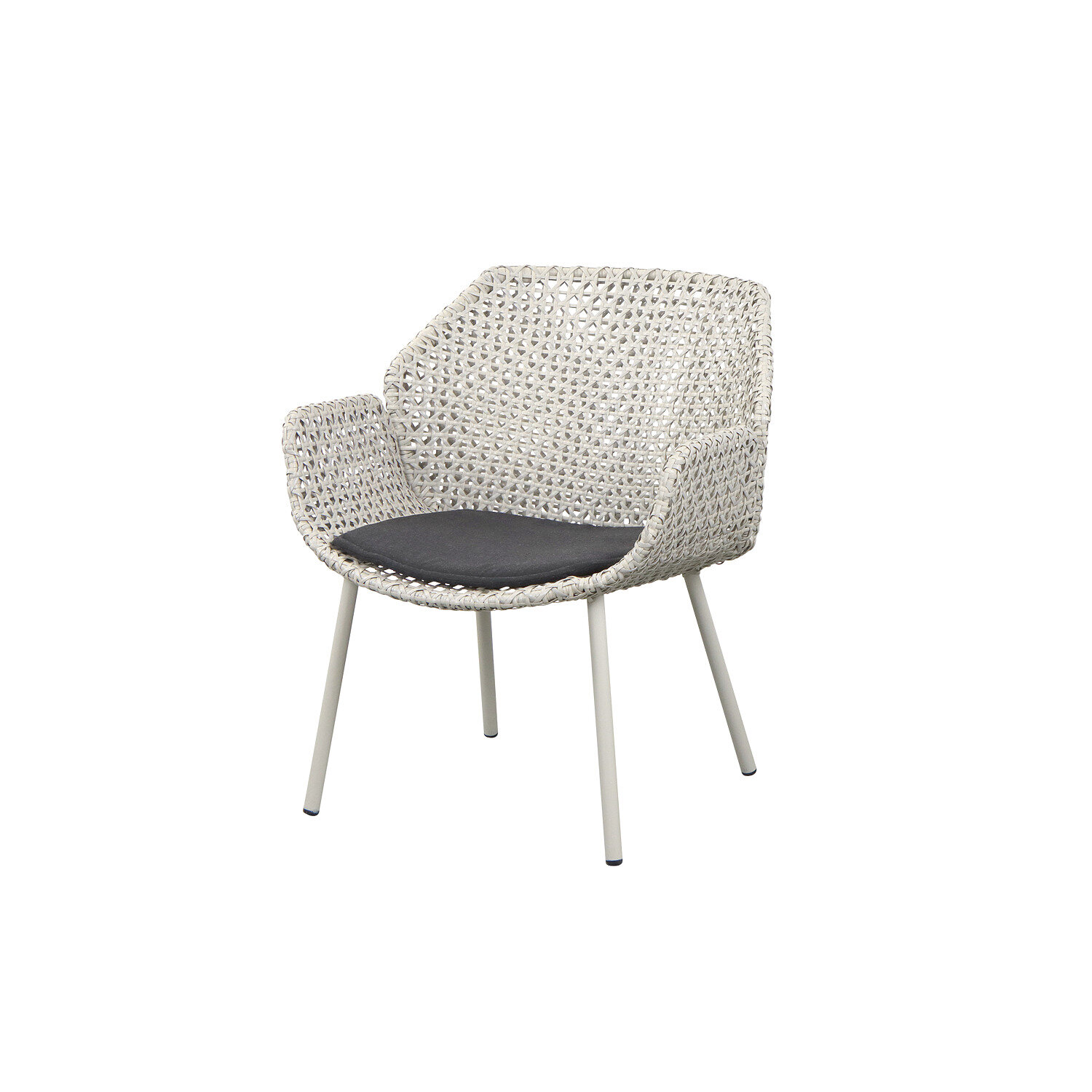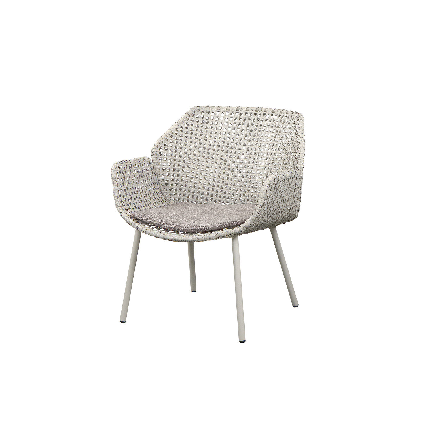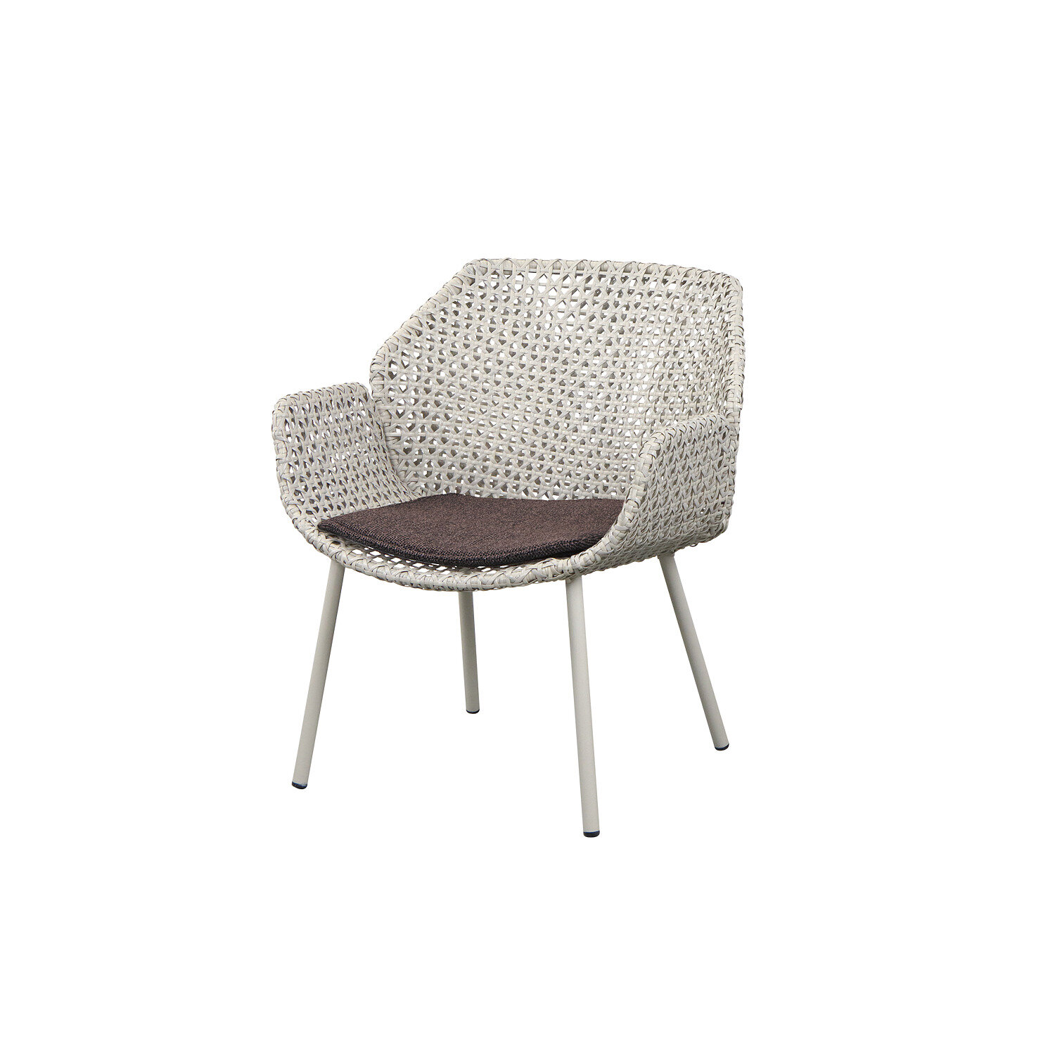 Cane-Line Vibe loungestol har et karakteristisk åbent vævemønster, der ikke kun er æstetisk tiltalende, men også sikrer optimal luftcirkulation. De fire cylindriske ben giver stolen stabilitet, mens dens relativt lette vægt på 9,25 kg gør den nemmere at håndtere end mange andre udendørsmøbler, hvilket er praktisk for fleksibel indretning.
