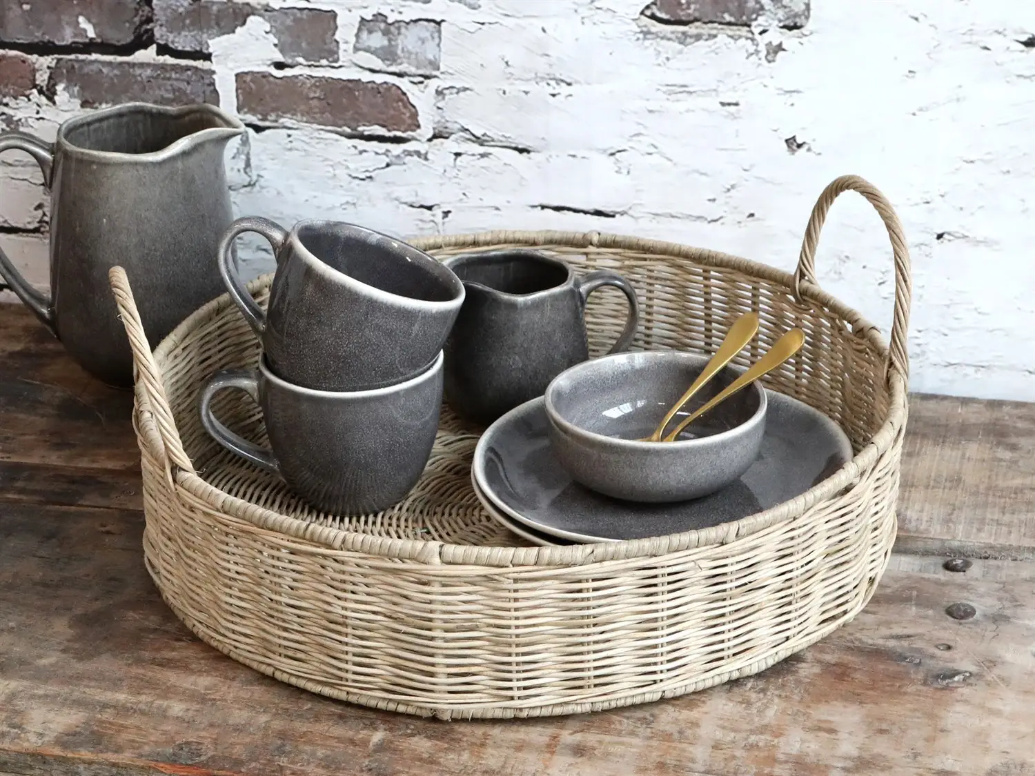 Smuk bakke i flet med praktiske håndtag, så du nemt kan anrette morgenmad på sengen eller bære service, kaffe og kage ud på terrassen. Bakken er ikke bare skøn, den er også funktionel.