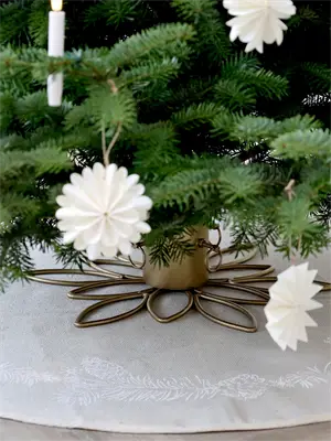 Vores smukke juletræstæppe fra Chic Antique i hvidt vævet bomuld med kogleprint er den perfekte tilføjelse til din juleindretning. Tæppet skaber den perfekte baggrund for dit juletræ og giver en følelse af vintermagi og hygge. Det stilfulde kogleprint giver tæppet en naturlig og rustik charme, der passer perfekt til den festlige sæson. Anvend tæppet under dit juletræ og det vil øjeblikkeligt forvandle din stue til et juleeventyr.