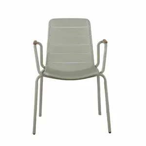 Hvis du søger havemøbler, der kan stå fremme uden konstant vedligeholdelse, er materialevalget afgørende. Teaktræet på armlænene tåler regn og sol uden at krakelere, mens det pulverlakerede aluminium modstår rust og falmning. Det slanke design på sæde og ryglæn sikrer, at regnvand løber af.