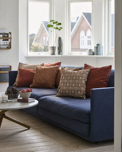 Med et sirligt orientalsk mønster i nuancer af rust, okker og sart blå skaber den fine Zepa pude en særlig varm stemning. Eksklusiv jacquardvævet pude.