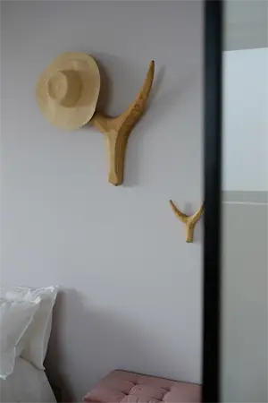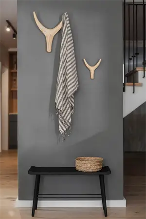 Hvis du søger en knage, der ikke dominerer, men stadig tilføjer karakter, er denne løsning værd at overveje. Den naturlige farve gør den nem at integrere i både minimalistiske og skandinavisk inspirerede indretninger, hvor træets struktur får lov at tale for sig selv.