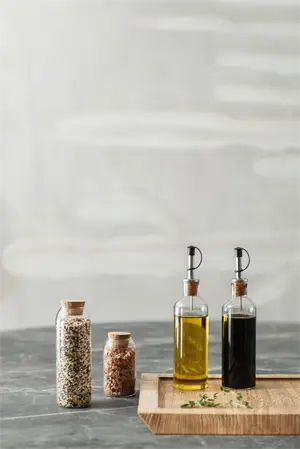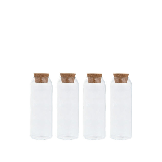 Med fire krukker kan du organisere dine mest brugte krydderier på en overskuelig måde. Glasset er gennemsigtigt, hvilket sparer dig tid, når du laver mad. Korken giver et naturligt look, der passer ind i de fleste køkkener, og materialet er holdbart. De kompakte mål betyder, at krukkerne passer i skuffer og på hylder.