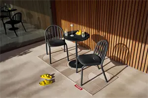 Dette havebord fra Fatboy er fremstillet i aluminium med pulverlakering, hvilket gør det vejrbestandigt og let at vedligeholde. Materialet tåler regn og sol uden at ruste, så du kan lade bordet stå ude hele sæsonen. Den kompakte størrelse gør det velegnet til mindre altaner og terrasser.