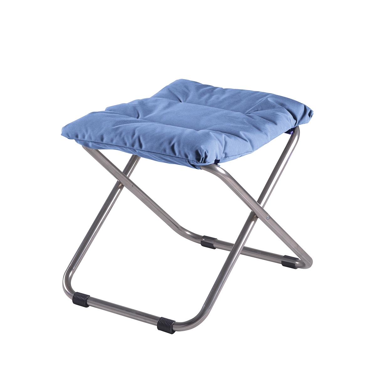 Den X-formede metalramme sikrer stabilitet, mens det polstrede sæde giver behagelig støtte til dine fødder. Fodskamlen bevarer sin farve og kvalitet gennem sæsonerne takket være de vejrbestandige materialer.