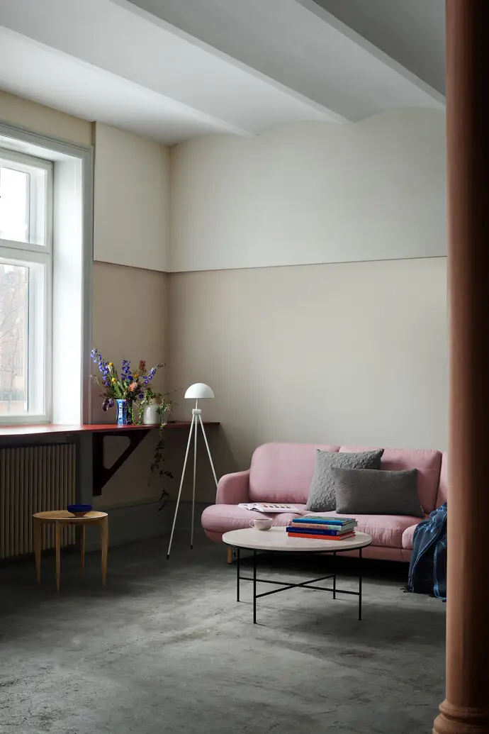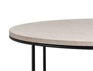 Den lyse cremefarve fungerer som en neutral base i de fleste rum, uanset om du har mørke eller lyse vægge. De sorte metalben skaber en kontrast, der giver bordet karakter uden at dominere. Med sin runde form passer det både foran sofaen og i hjørnet af stuen.