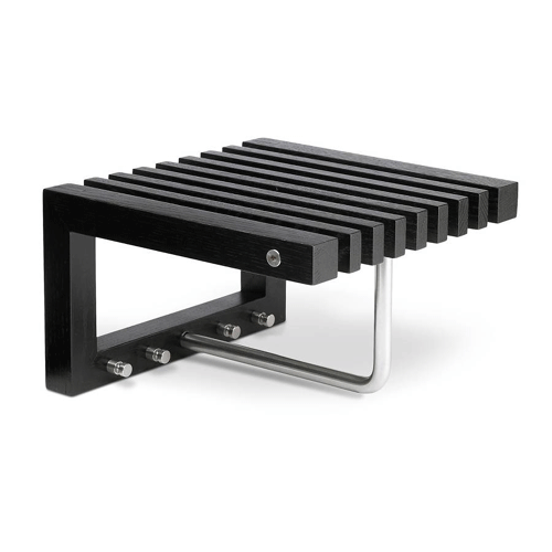 Denne vægmonterede garderobeløsning fra Skagerak er lavet af sortbejdset eg og måler 30,8 x 30,2 x 18,6 cm. Den kompakte konstruktion med vandrette lameller giver dig praktisk opbevaring uden at optage gulvplads, hvilket er ideelt til mindre entréer eller smalle gange.