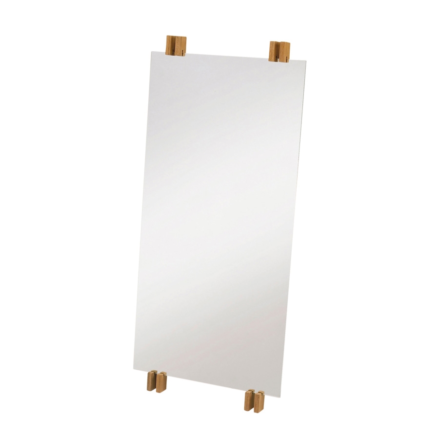 - Vægmonteret spejl med teakbeslag øverst og nederst