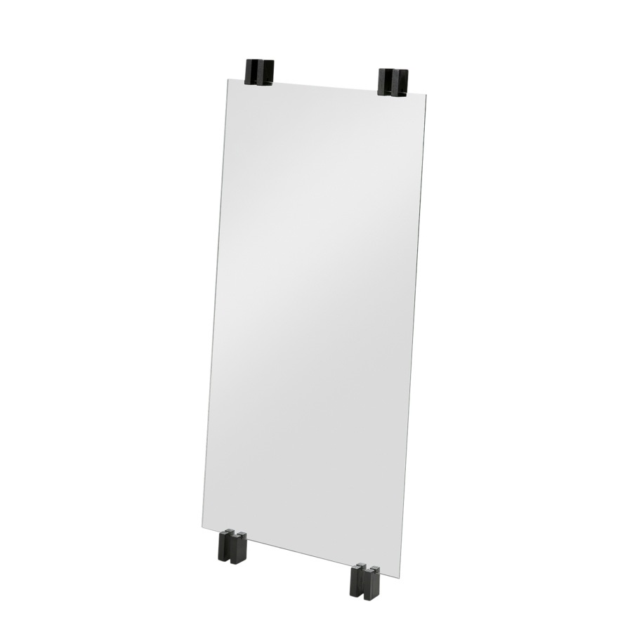 Spejlet er designet til at monteres vertikalt på væggen, hvilket gør det velegnet til entréer, soveværelser eller badeværelser, hvor du har brug for et funktionelt spejl i fuld højde. De fire sorte beslag fordeler vægten jævnt og sikrer, at spejlet sidder fast og stabilt over tid.