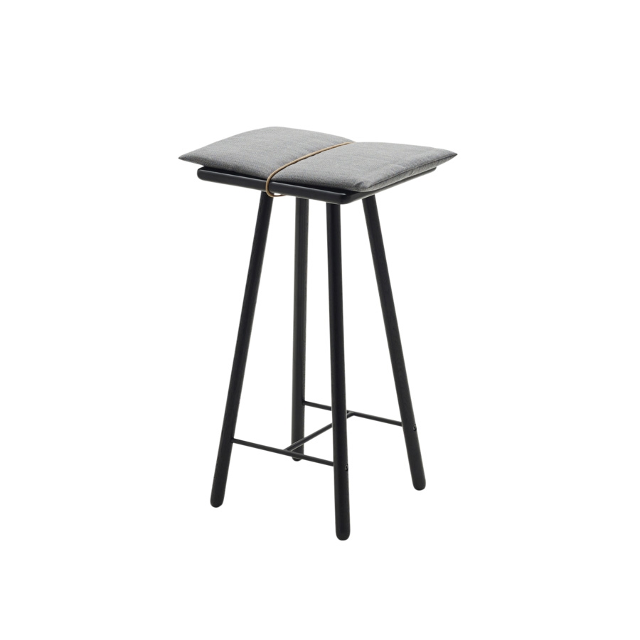 Denne barstol fra Fritz Hansen kombinerer funktionel komfort med et minimalistisk udtryk. Det sadelformede sæde med grå hynde giver en behagelig siddeplads, der støtter kroppen naturligt. Konstruktionen i sort eg tilføjer et diskret, naturligt look, der passer ind i moderne indretninger.