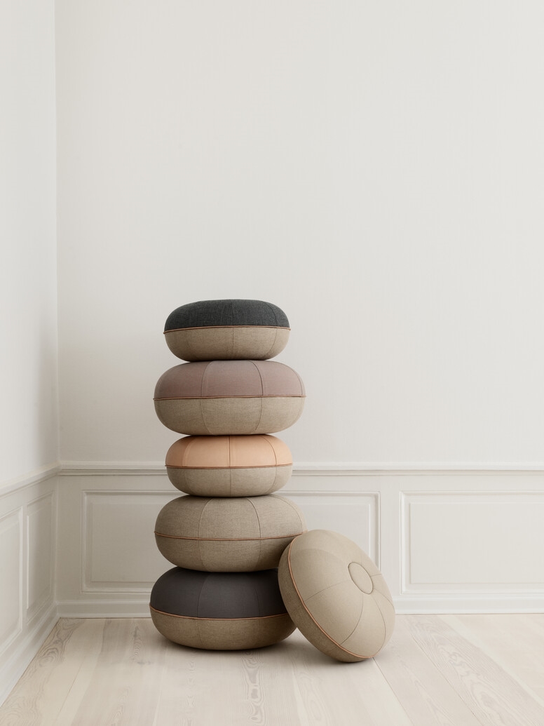 Størrelsen gør puffen velegnet til stuen, soveværelset eller hjemmekontoret. Du kan flytte den rundt efter behov, og materialerne – uld, linned og læderkant – giver en overflade, der er både behagelig og modstandsdygtig. Fritz Hansen leverer kvalitet, der holder i mange år.